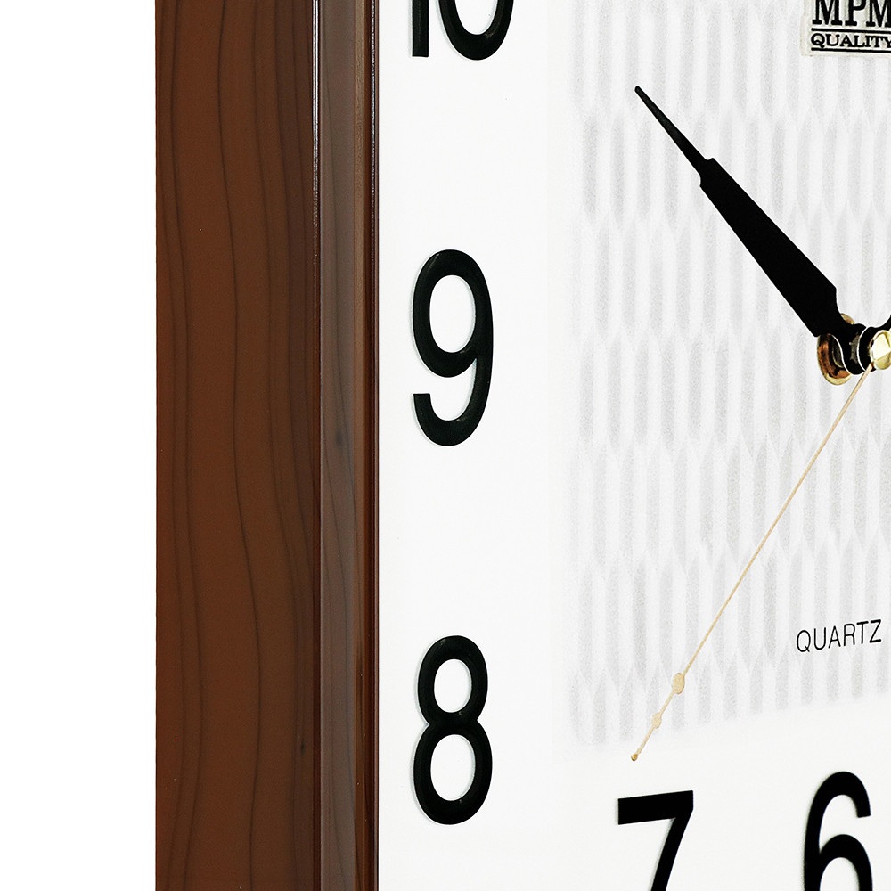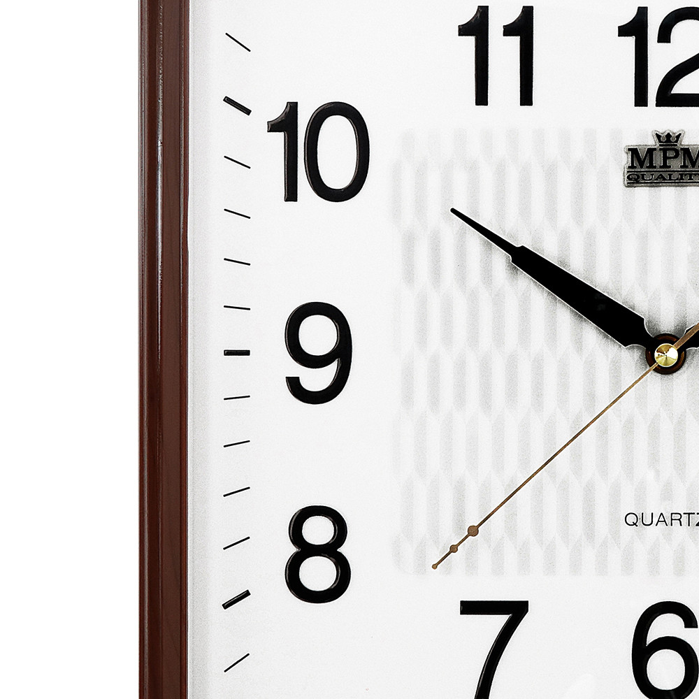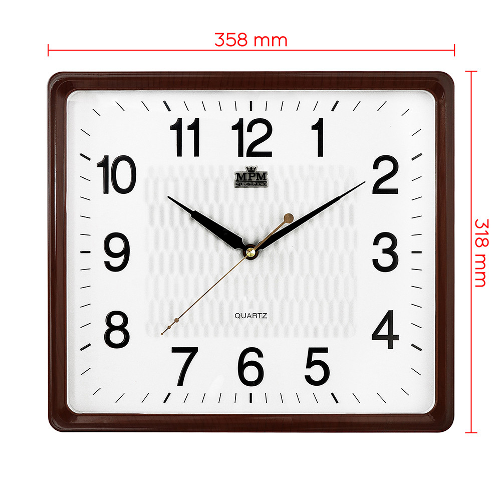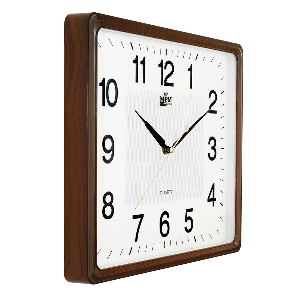 Hranaté plastové hodiny bílé/hnědé MPM Elvida - E