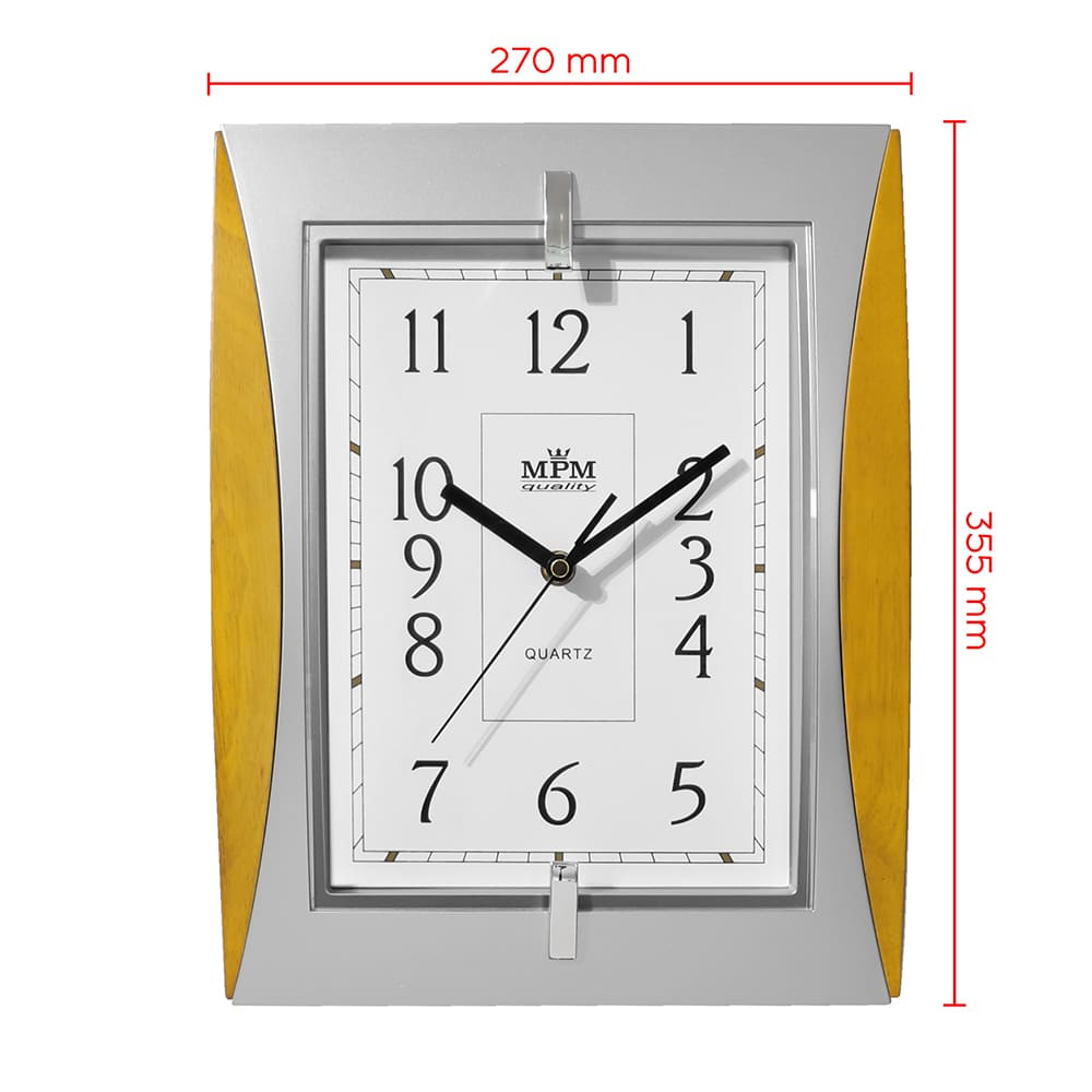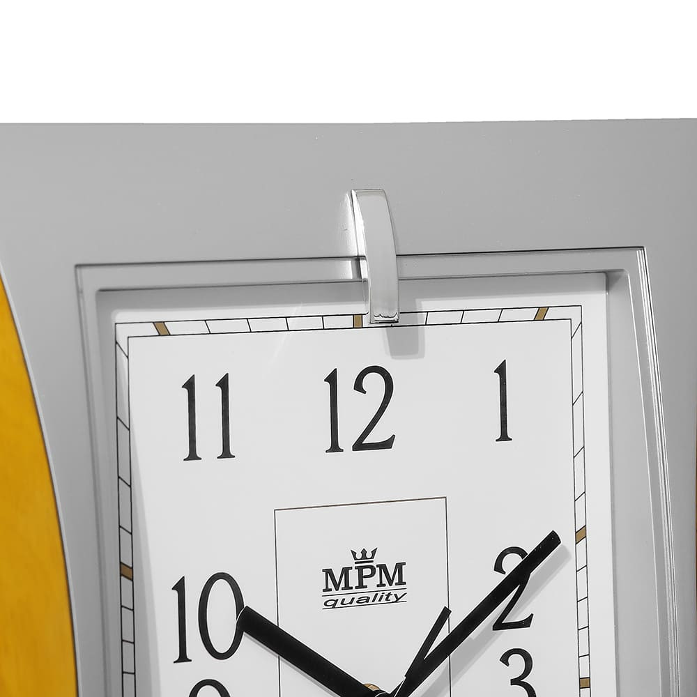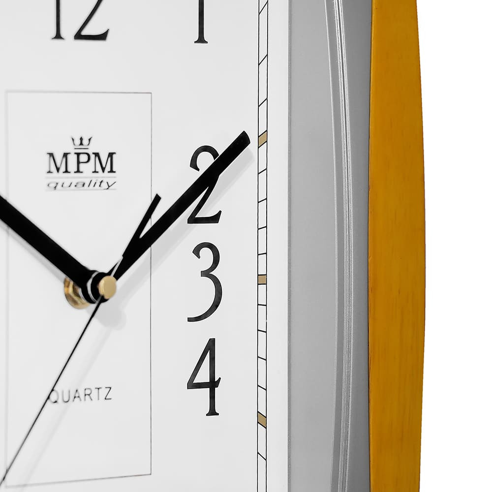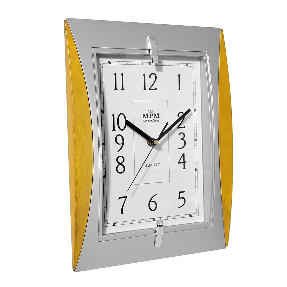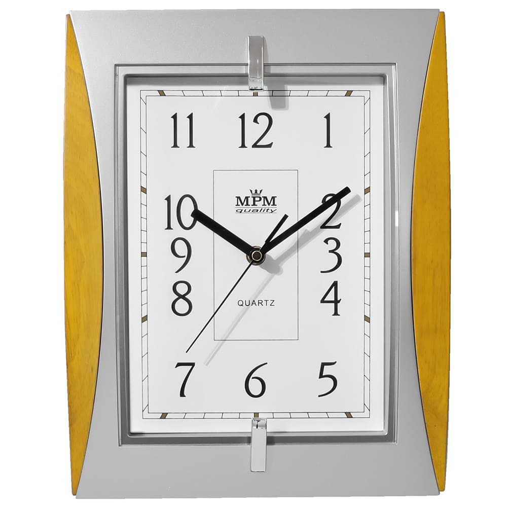 Hranaté plastové hodiny stříbrné/světle hnědé MPM Xaver - stříbrno-světle dřevěné
