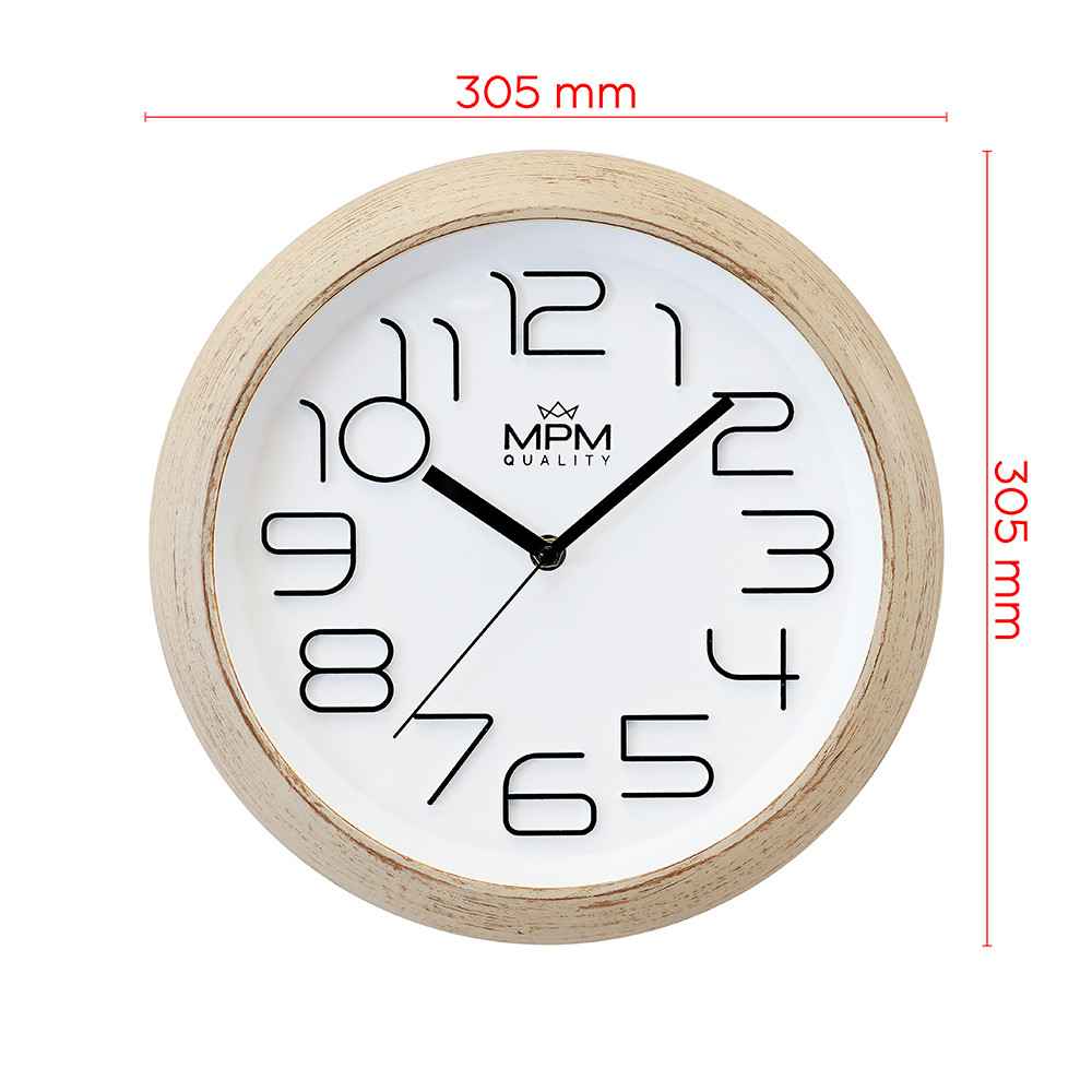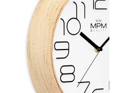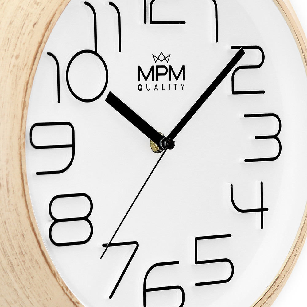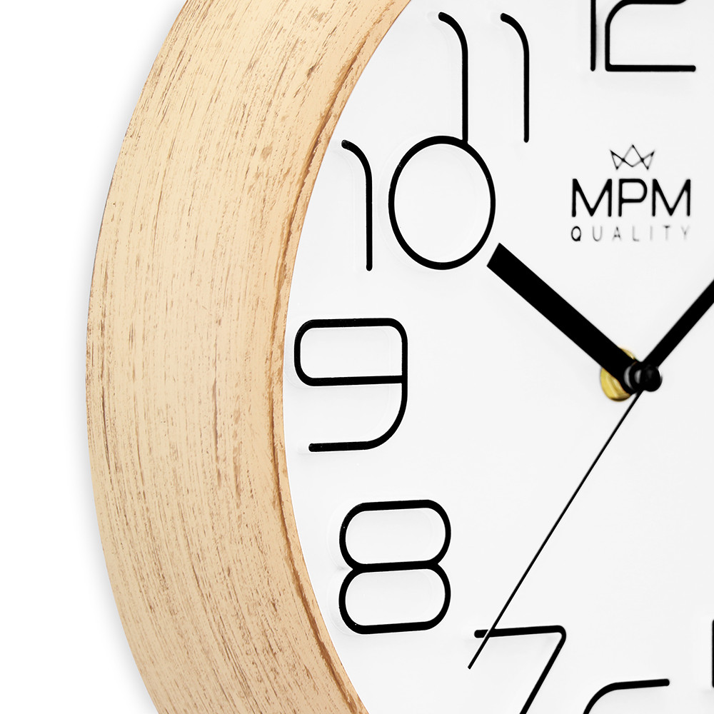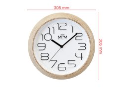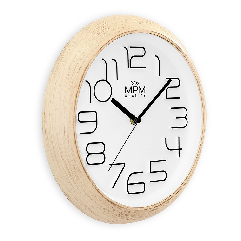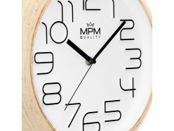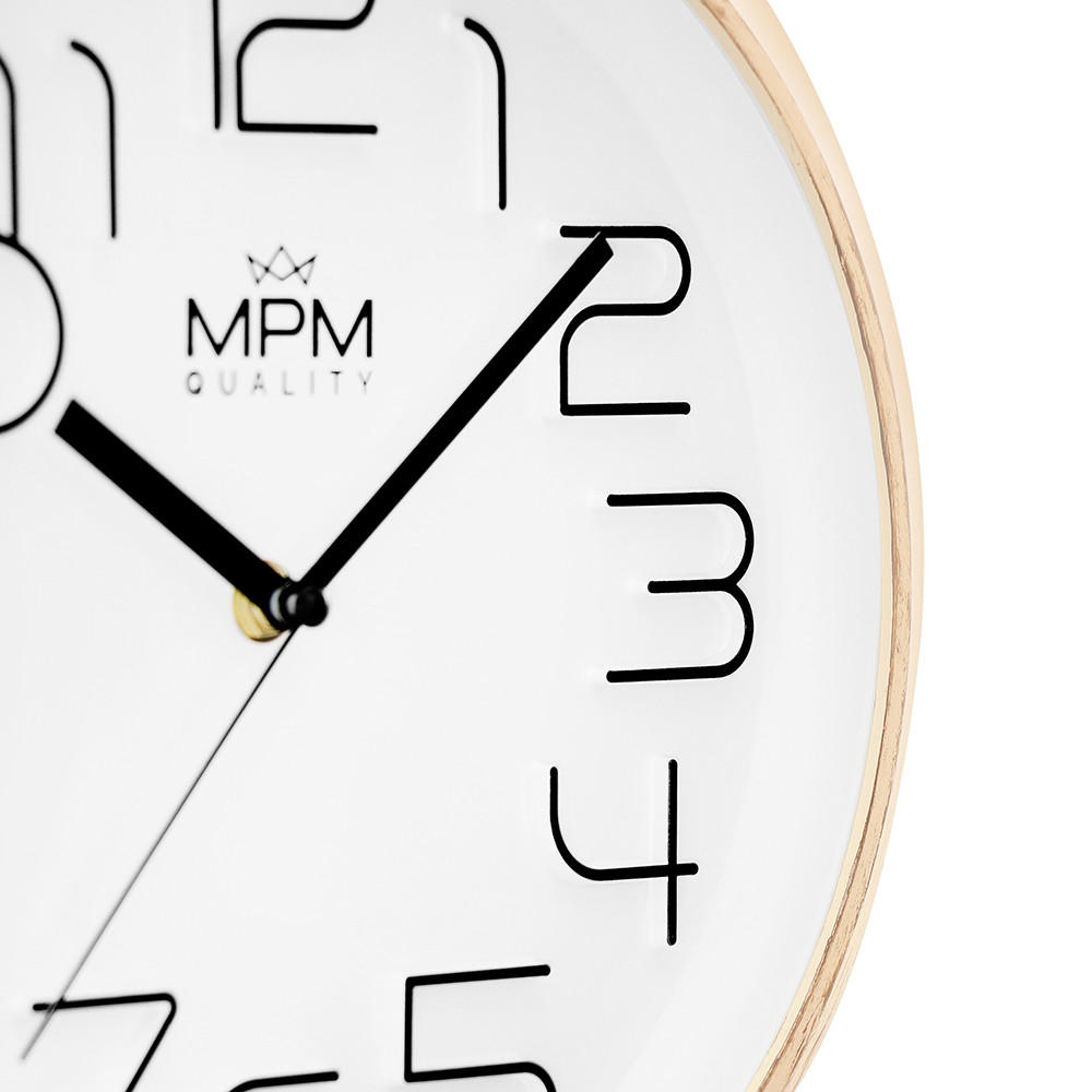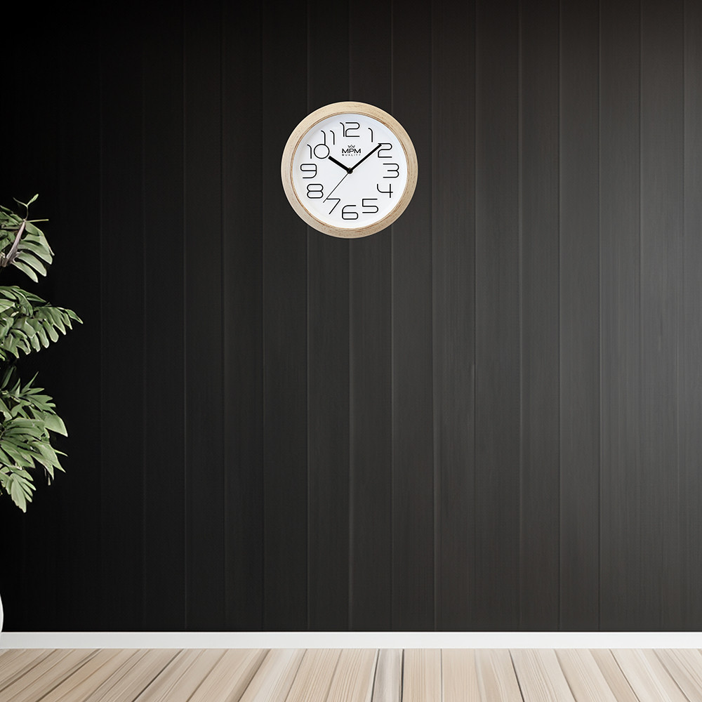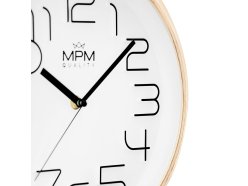 Divatos műanyag falióra fehér/világos barna MPM Morara
