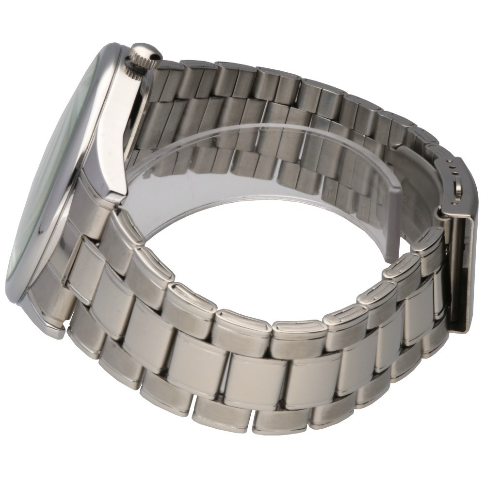 Elegantní hodinky s ocelovým řemínkem a ukazatelem data.