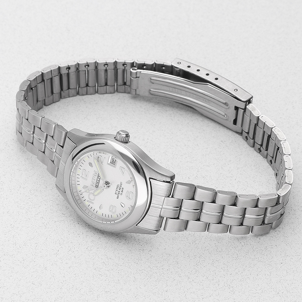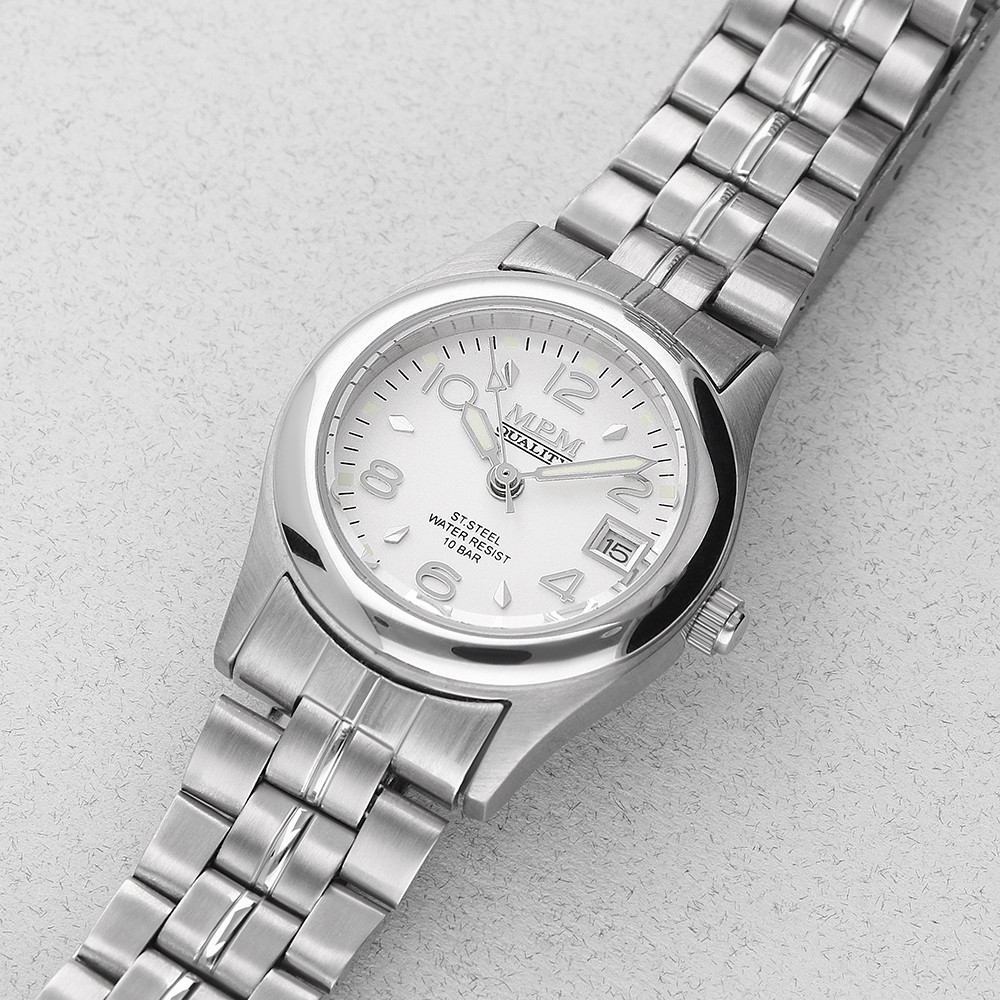 Klasické dámské hodinky MPM Katti s datumovkou v různých barevných provedeních. Hodinky jsou vyrobeny z ušlechtilé nerezové oceli, která vyniká svou antialergenní vlastností. Voděodolnost 10 ATM umožňuje krátkodobé sprchování či koupání ve vaně. Pro plavání však nejsou vhodné. Číselník hodinek je doplněn vystouplými číslicemi a indexy, které se na číselníku pravidelně střídají. Datumovka se nachází na pozici třetí hodiny. U tohoto modelu jistě zaujmou zvýrazněné luminiscenční ručičky ve tvaru meče, které ještě více pozvedávají osobitý styl těchto hodinek.