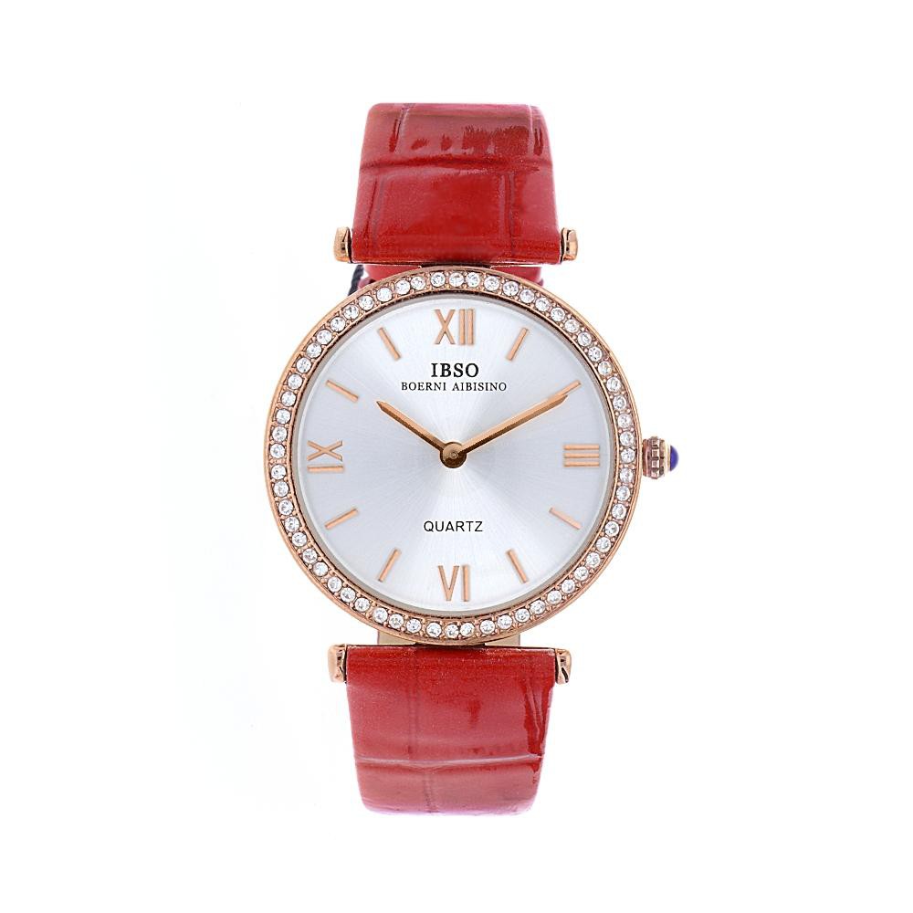 Elegantní dámské hodinky s kamínky a koženým řemínkem.