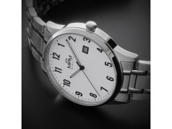 Klasické pánské hodinky MPM Klasik I na nerezovém tahu s funkcí zobrazení data na číselníku.
