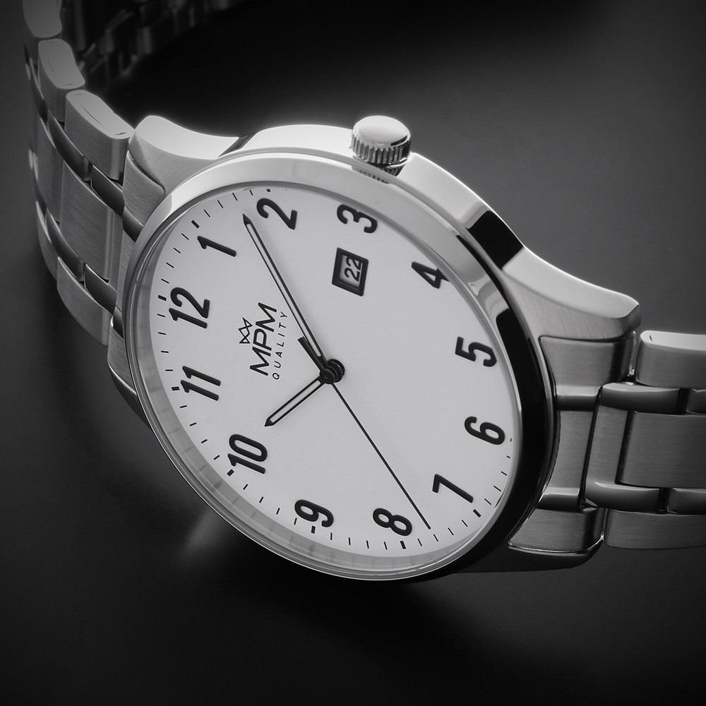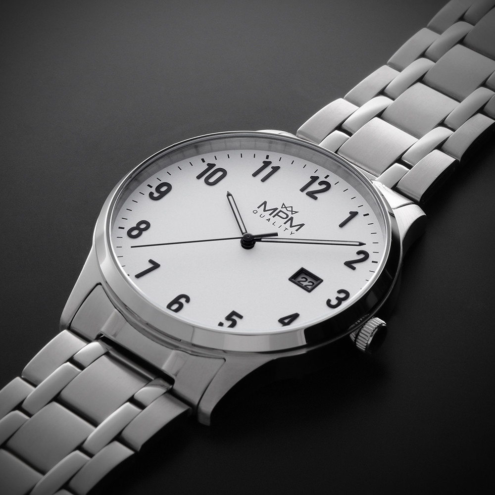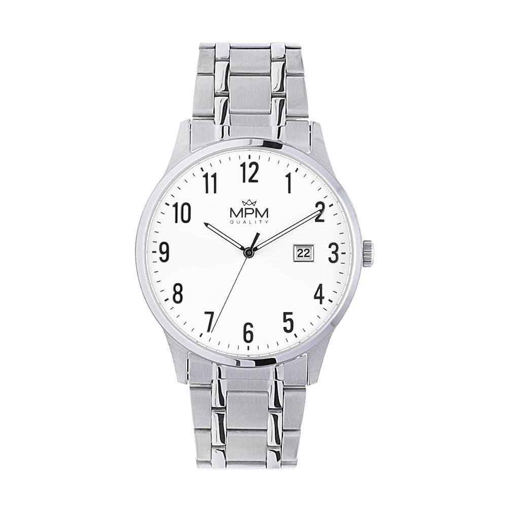 Klasické pánské hodinky MPM Klasik I - 11149.A - ocelové pouzdro - bílý/černý číselník