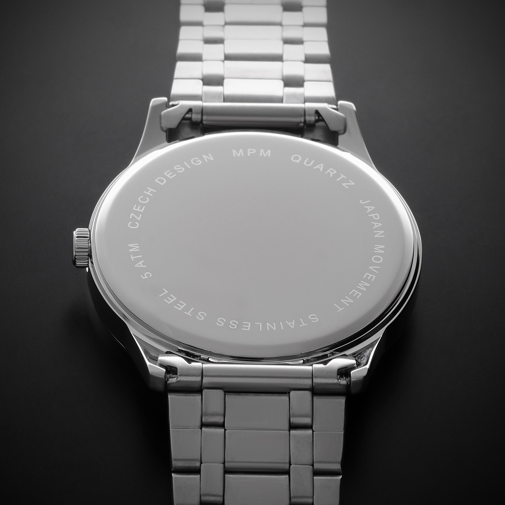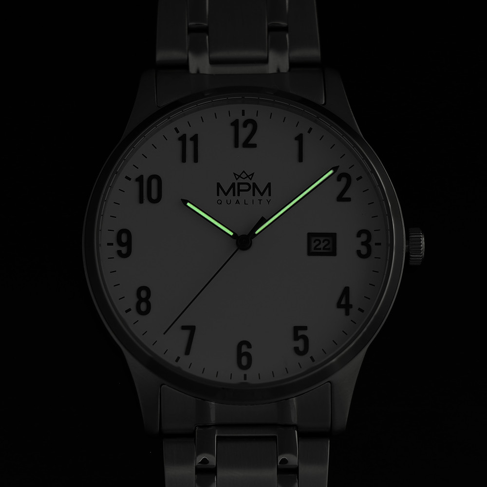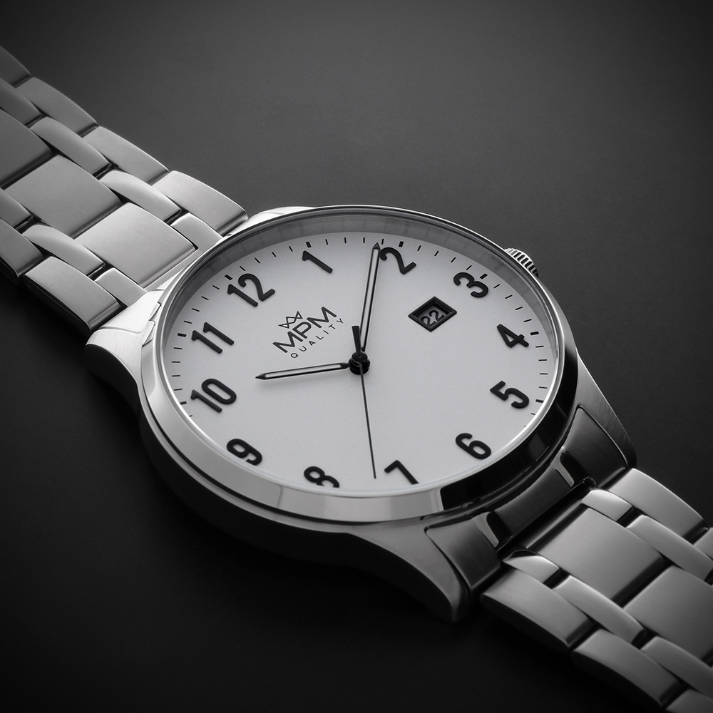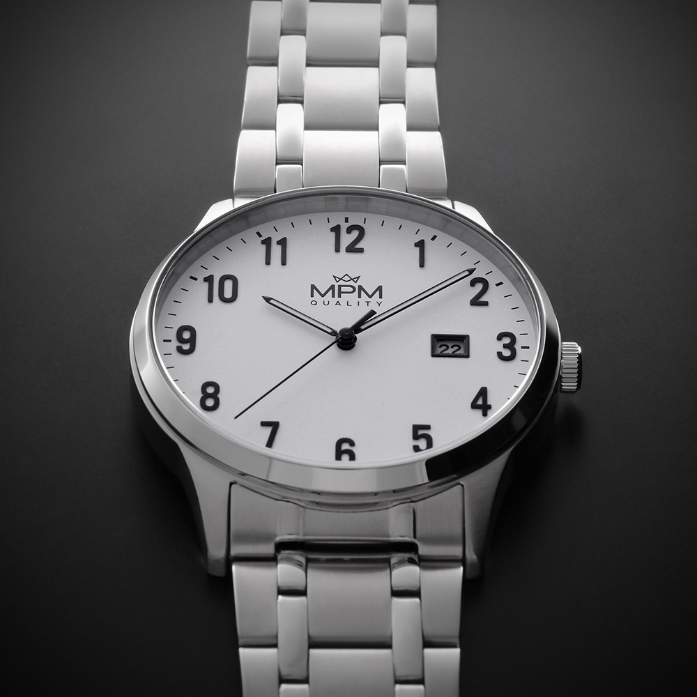 Klasické pánské hodinky MPM Klasik I - 11149.A - ocelové pouzdro - bílý/černý číselník