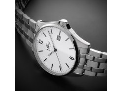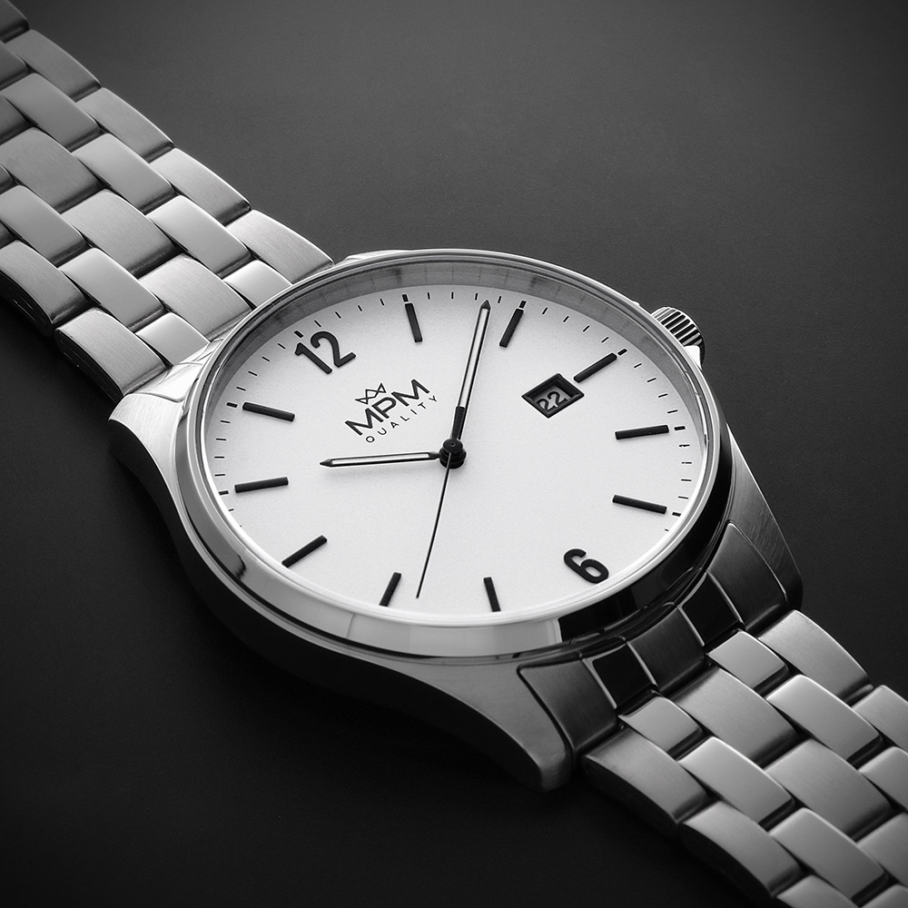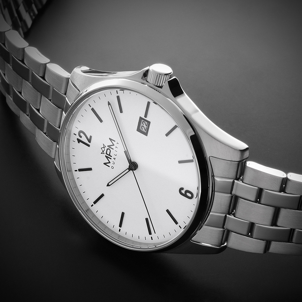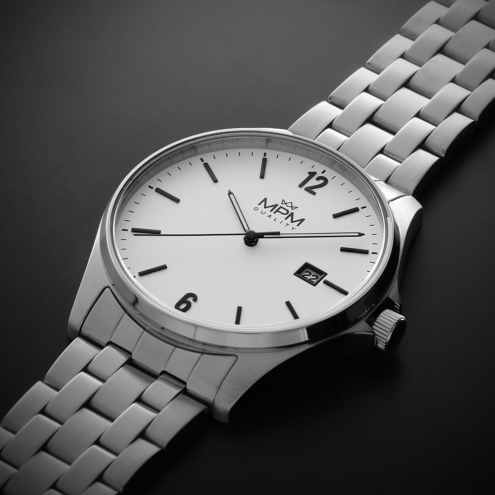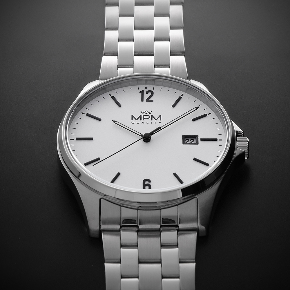 Klasické pánské hodinky MPM Klasik III - 11151.A - ocelové pouzdro - bílý/černý číselník