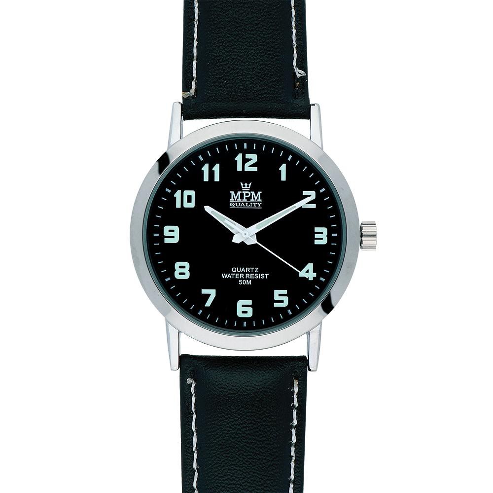 Klasické pánské hodinky MPM Merci - E - kovové pouzdro - černý/světle zelený číselník