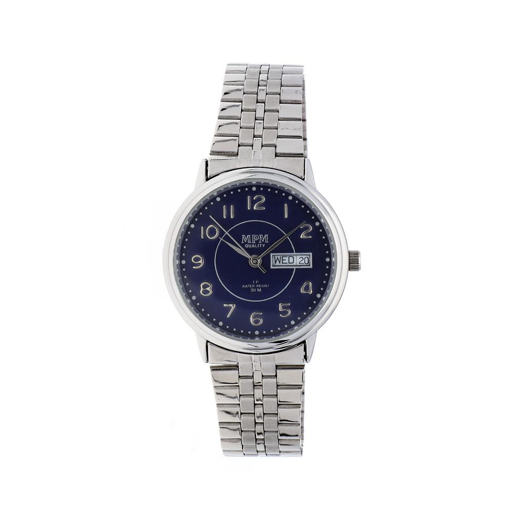 Klasické pánské hodinky MPM Quality W01M.11203.C - kovové pouzdro - modrý/stříbrný číselník