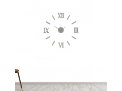 Originální nástěnné nalepovací hodiny. Plně tvarované číslice a indexy v luxusní stříbrné barvě jsou vyrobené z pěny EVA (ethylene vinyl acetate), která vyniká svou lehkosti, dokonalou přilnavostí a odolnosti proti vnějším vlivům. Tyto nalepovací hodiny se stanou elegantním doplňkem každého interiéru.
