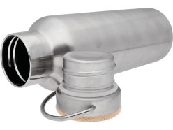 Kvalitní termoska o objemu 500 ml s odolnou rukojetí. Obojí je vyrobeno z nerezové oceli. Povrch víčka je vyroben z bambusu.
