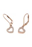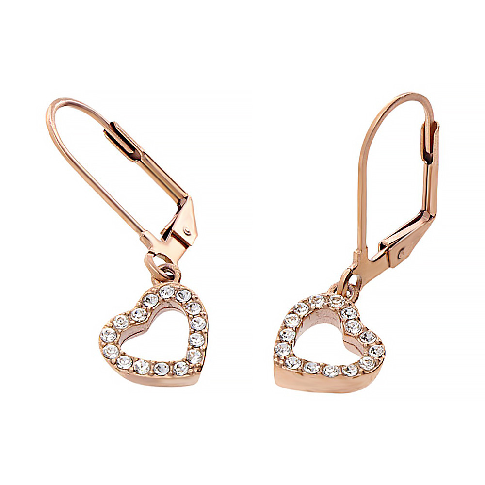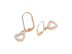 Růžově zlacené dámské náušnice ve tvaru srdíčka obloženého precizně broušenou kubickou zirkonií. Náušnice jsou vyrobeny z prvotřídní chirugické oceli, která je velmi populární pro své antialergenní vlastnosti. Při jejich výrobě se dbalo na jejich kvalitní pozlacení technologií IPG (Ionic plating gold - tzv. iontové pokování), která probíhá ve vakuovém prostředí, kdy jsou ionty zlata při vysoké rychlosti nanášeny na povrch oceli. Tím zlato proniká přímo do materiálu a zlacení získá vysokou odolnost proti poškrábání a otěru.