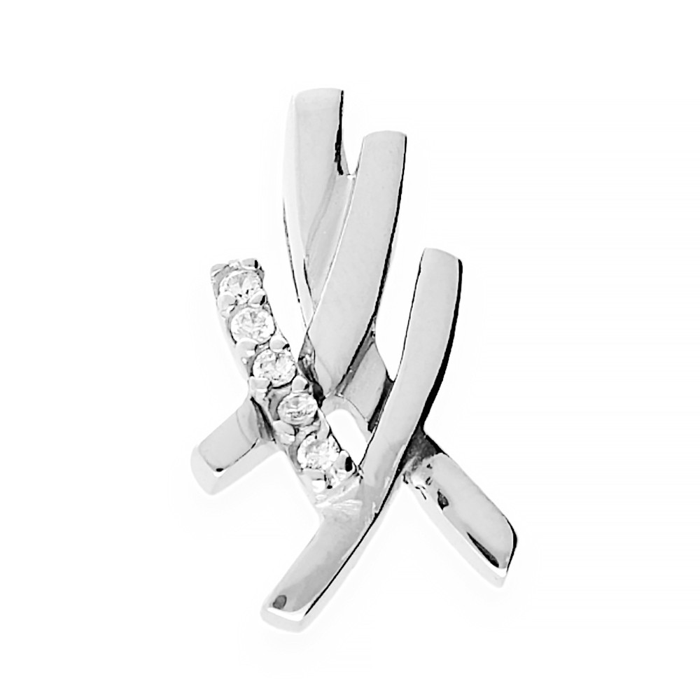 Stylový dámský nerezový přívěsek z antialergenní chirurgické oceli ve tvaru připomínajícího plápolající oheň. Šperk je zdoben pěti kusy kubických zirkonií, které dávají tomuto přívěsku elegantní nádech.