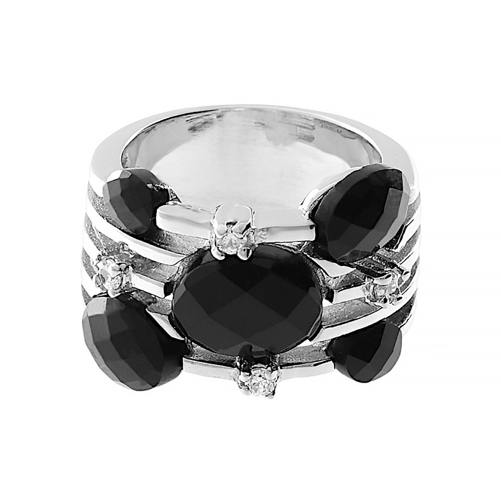 Elegantní dámský prsten z antialergenní chirurgické oceli. Prstýnek je ozdoben kombinací broušených kubických zirkonií a černých kamínků.