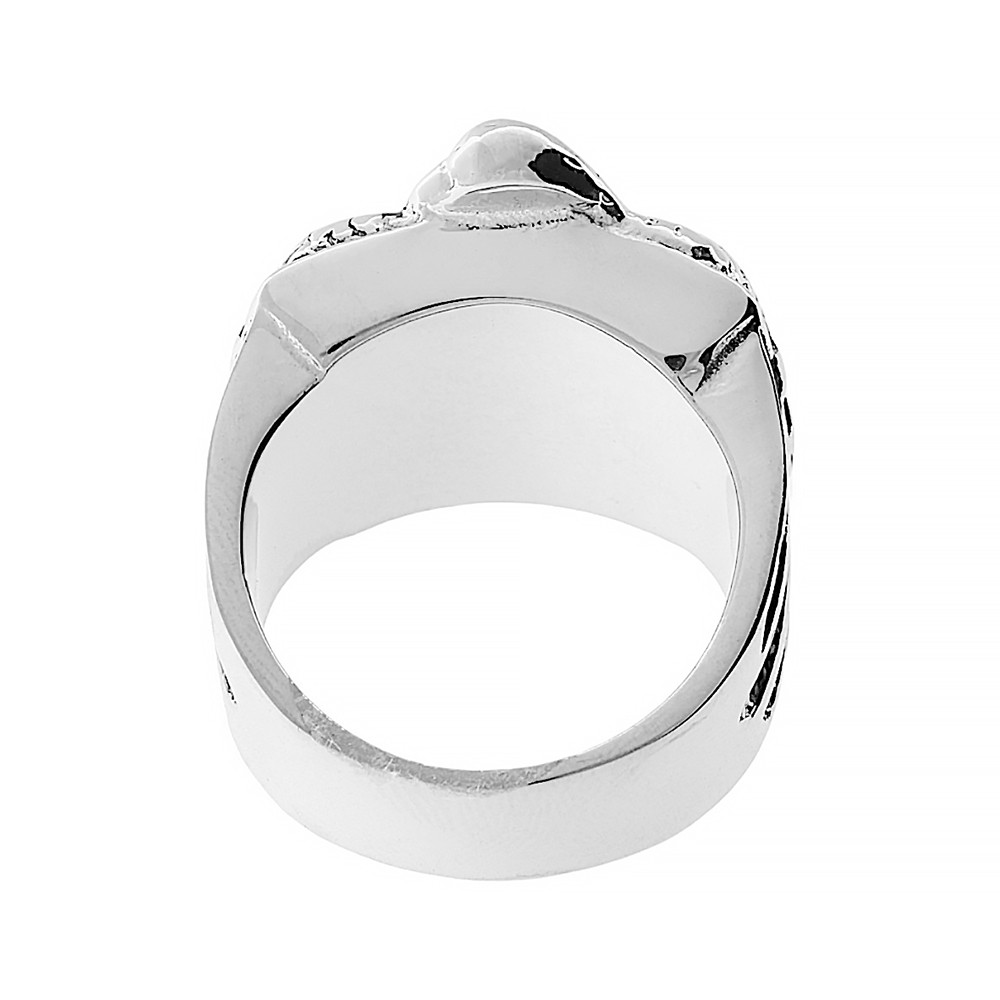 Masivní pánský nerezový prsten vyrobený z prvotřídní chirugické oceli se stříbrnočerným motivem motorky.