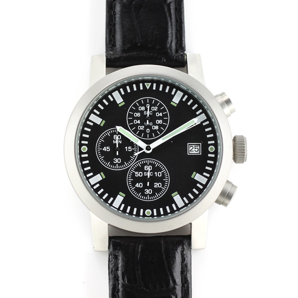 Pánské hodinky s ukazatelem datum s pevným koženým řemínkem.