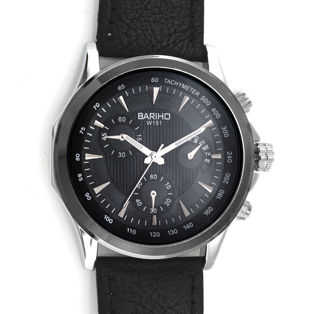 Decentní pánské hodinky s chronografem a koženým řemínkem.