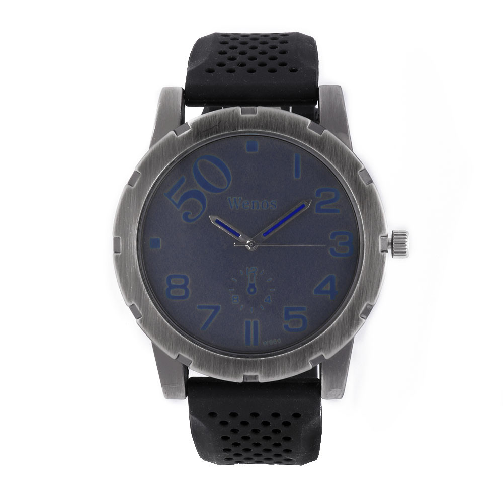 Pánské sportovní hodinky WENOS W01X.10244.C - kovové pouzdro - šedý/modrý číselník