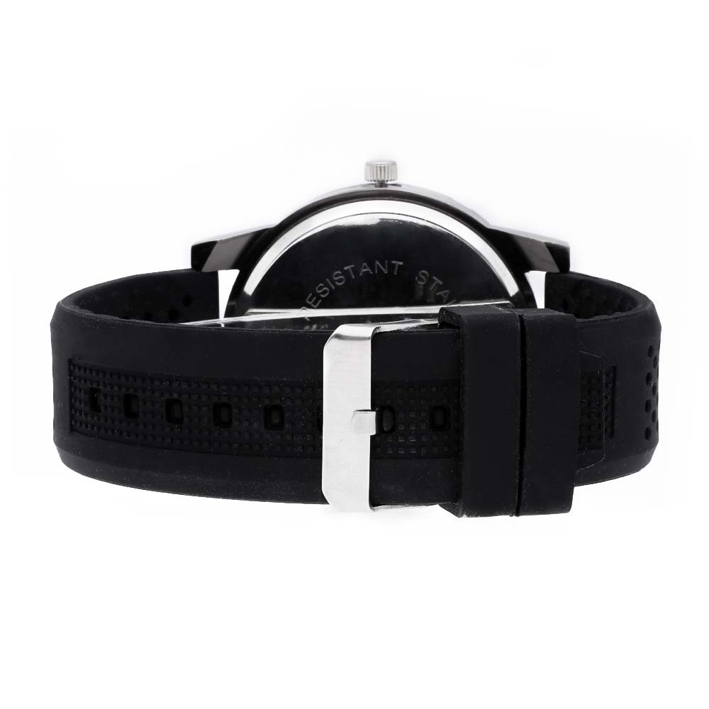 Pánské hodinky s velkým kovovým pouzdrem v antické stříbrné barvě a s gumovým řemínkem. Číselník s nepřehlédnutelnými číslicemi.