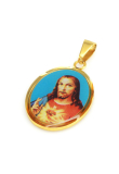 Kovový přívěsek s náboženským motivem. Vzhledem k lepeným dílům doporučujeme tento přívěsek před stykem s vodou chránit.