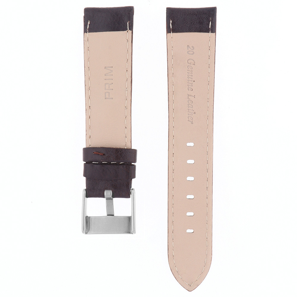 Ciemna brązowa skórzana pasek L PRIM RB.15027.2018.52.L - zapięcie srebrny
