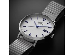 Klasyczny męski zegarek MPM Klasik IV - 11152.B - stalowy koperta - niebieska/srebrna tarcza