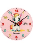 Kolorowy szklany zegar ścienny rozpogodzi twarz każdego dziecka. Zwierzęce motywy – kucyk z tęczową grzywą i niebieskimi kopytami, wesoły osiołek na pistacjowym tle i uroczy szczeniak na jaskrawożółtym tle. Z przyjemnością nadrukujemy imię ich małego właściciela całkowicie bezpłatnie. Maksymalna długość imienia to 8-9 znaków.