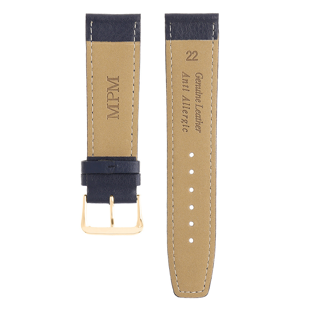 Pikowany pasek skóropodobny wykonany z wysokiej jakości skóry bydlęcej z wytłoczonym wzorem bawolej skóry. Pasek jest kompatybilny z zegarkami o szerokości 22 mm.