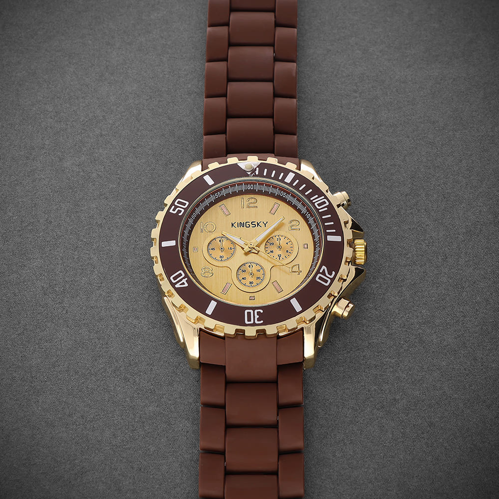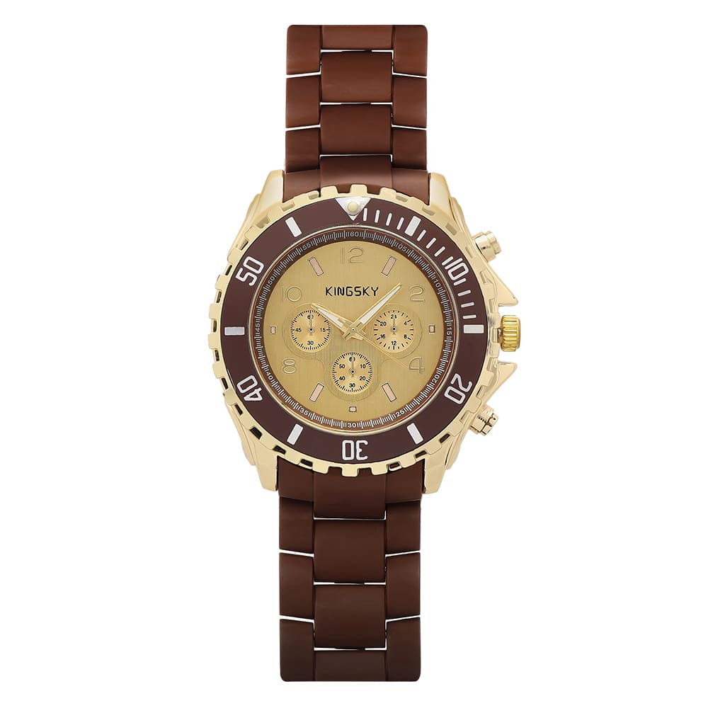 Zegarek męski sportowy KINGSKY KINGSKY Altair - C - metalowy złoceny koperta - złota tarcza