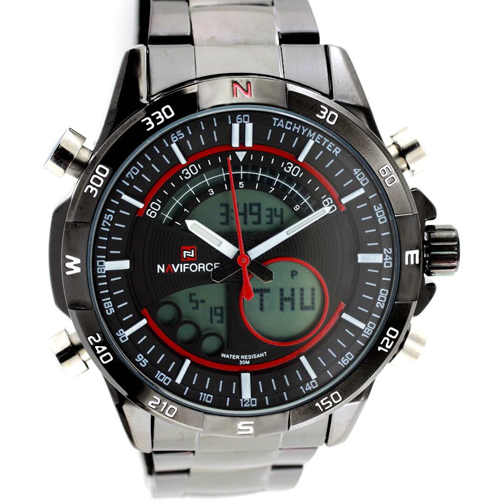 Zegarek męski sportowy NAVIFORCE W01X.10866.B - metalowy koperta - czerwona/czarna tarcza