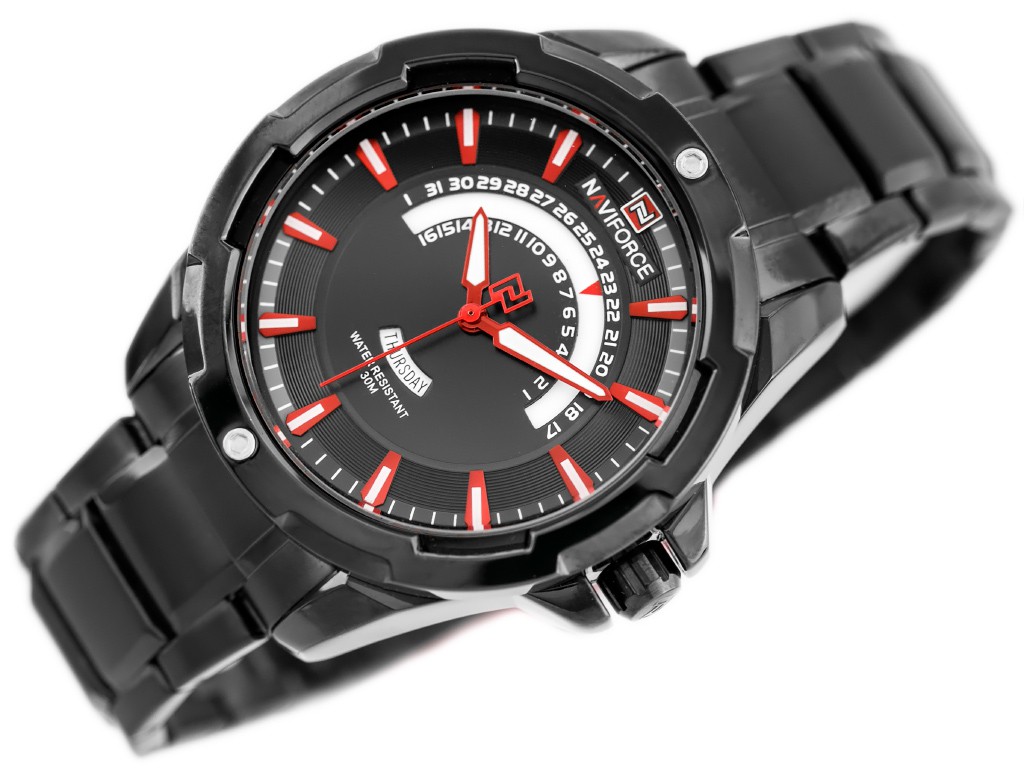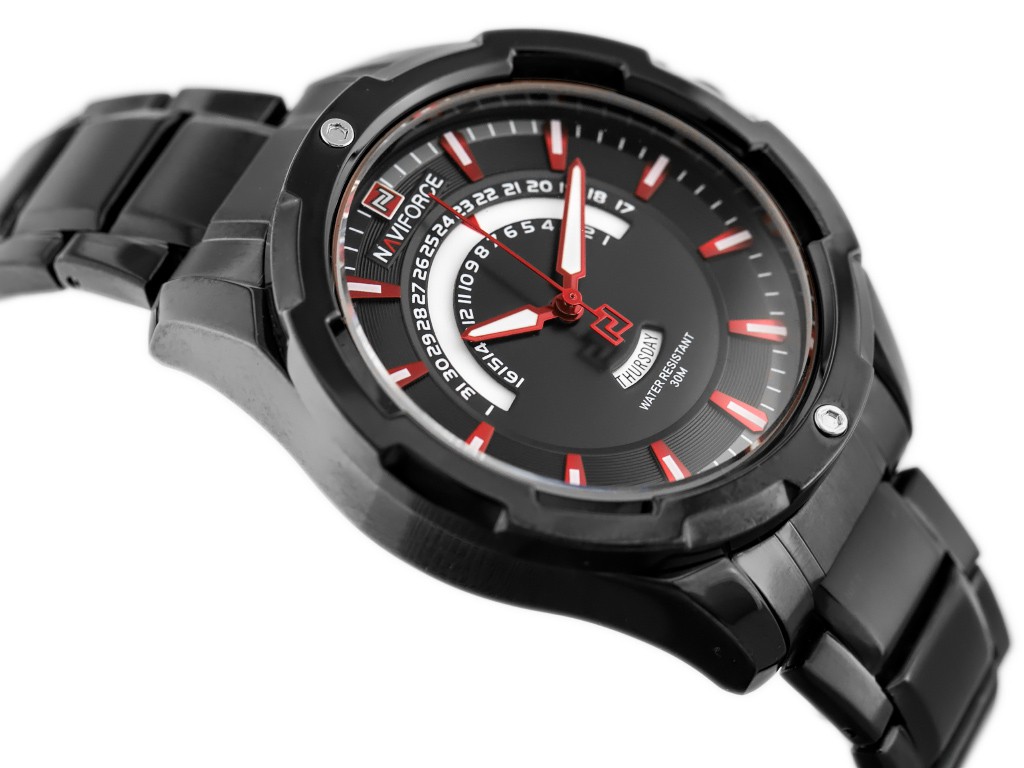 Zegarek męski sportowy NAVIFORCE W01X.11046.C - metalowy koperta - czerwona/czarna tarcza