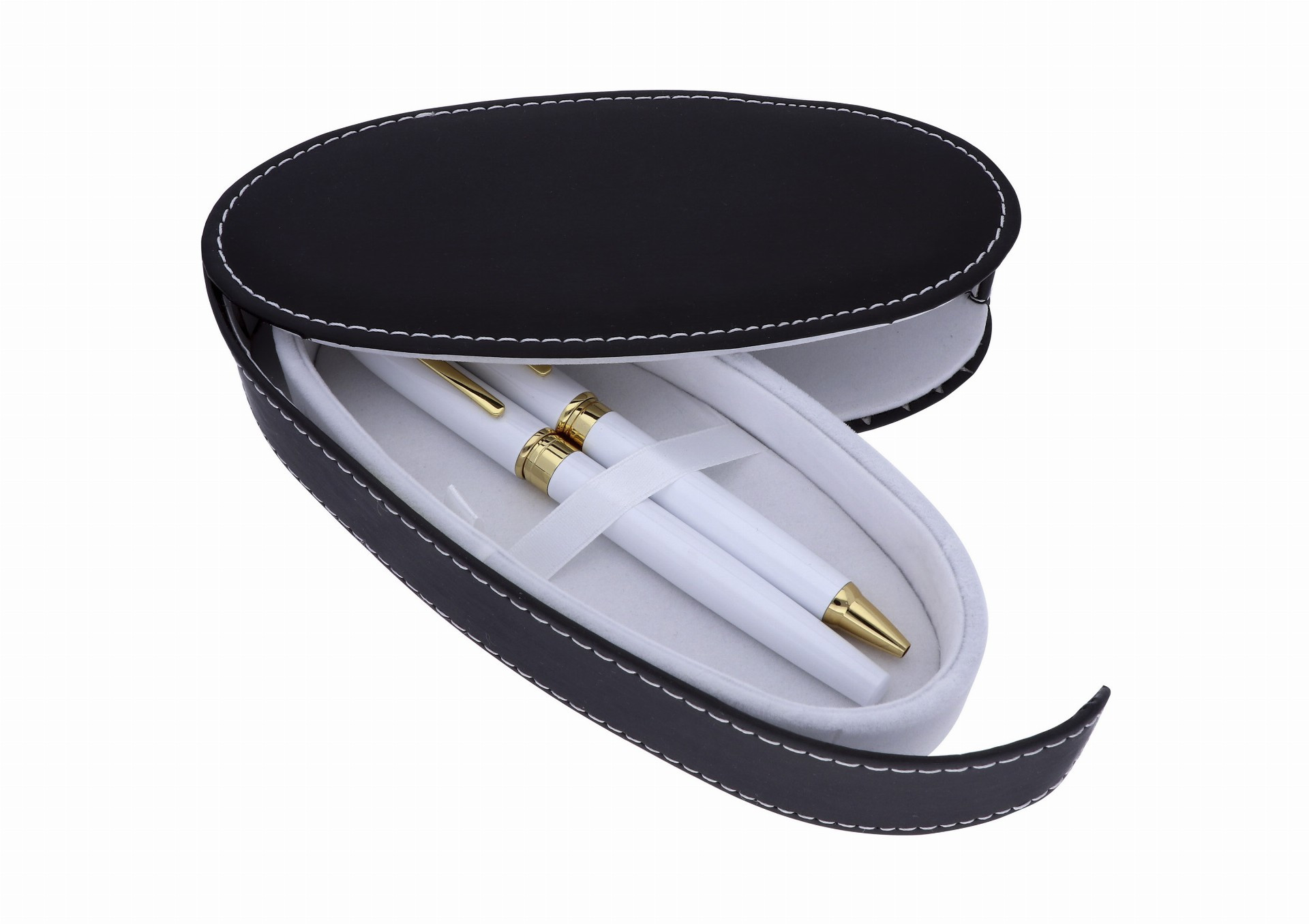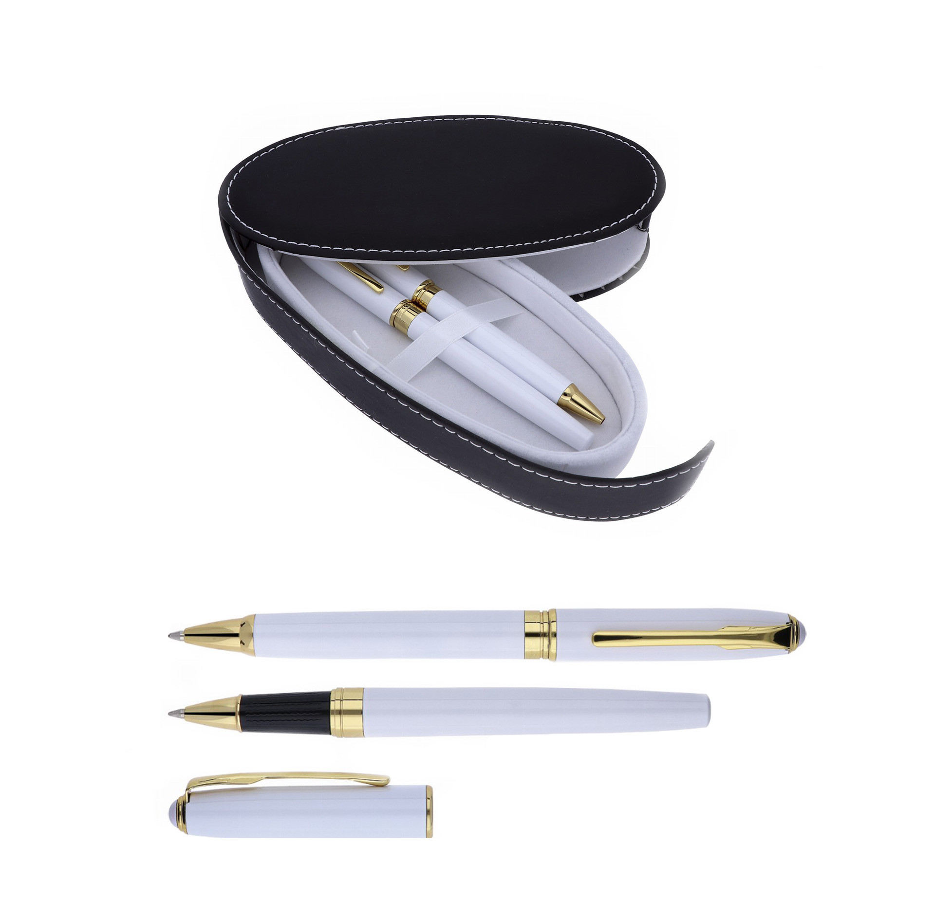 Elegantní psací sada Hogan představuje reprezentativní kombinaci kovového kuličkového pera a rolleru, uložených v pevném dárkovém boxu s povrchovou úpravou imitující kůži.
