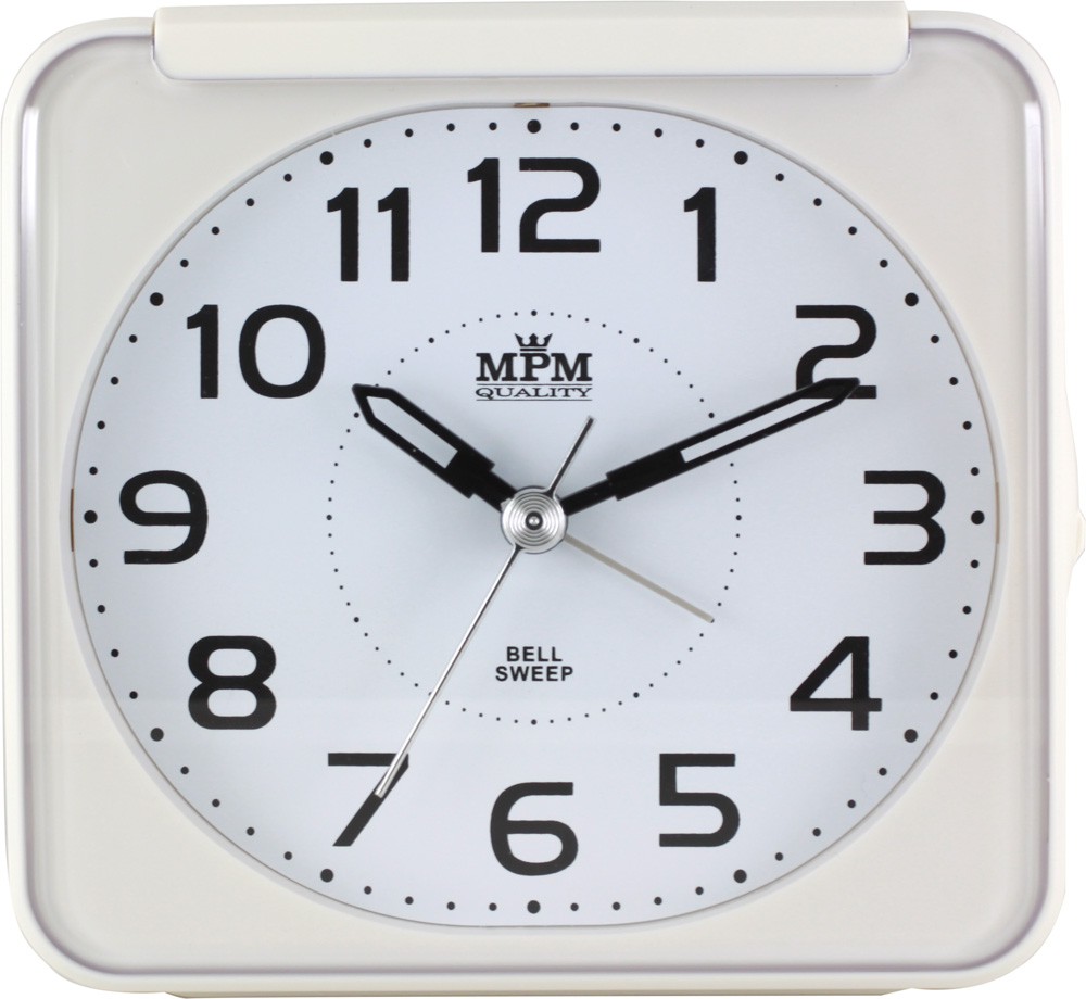 Plastový analógový budík s plynulým chodom a hlasným alarmom.