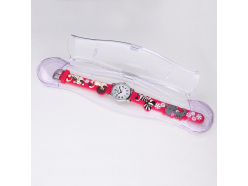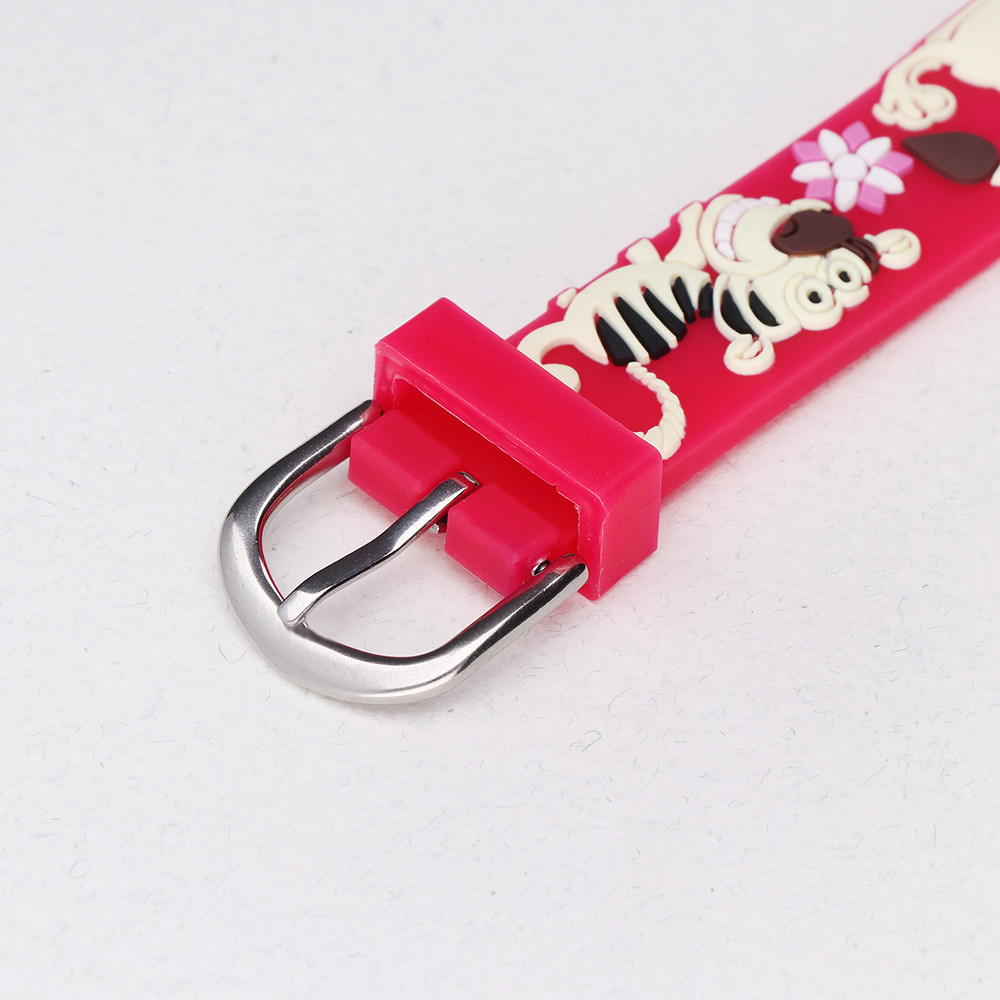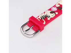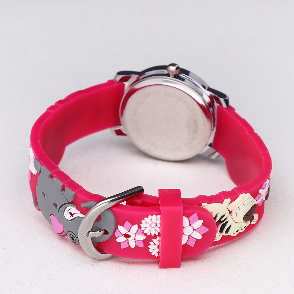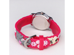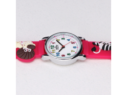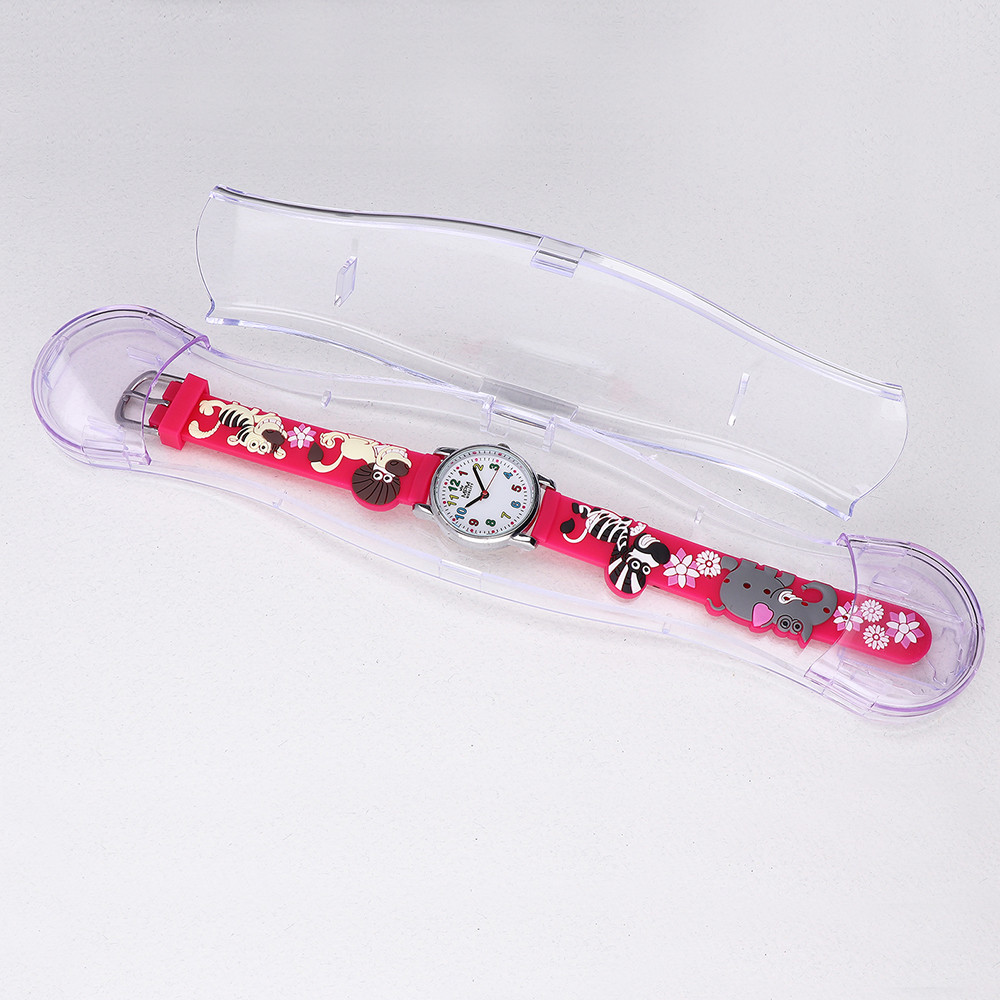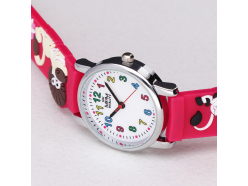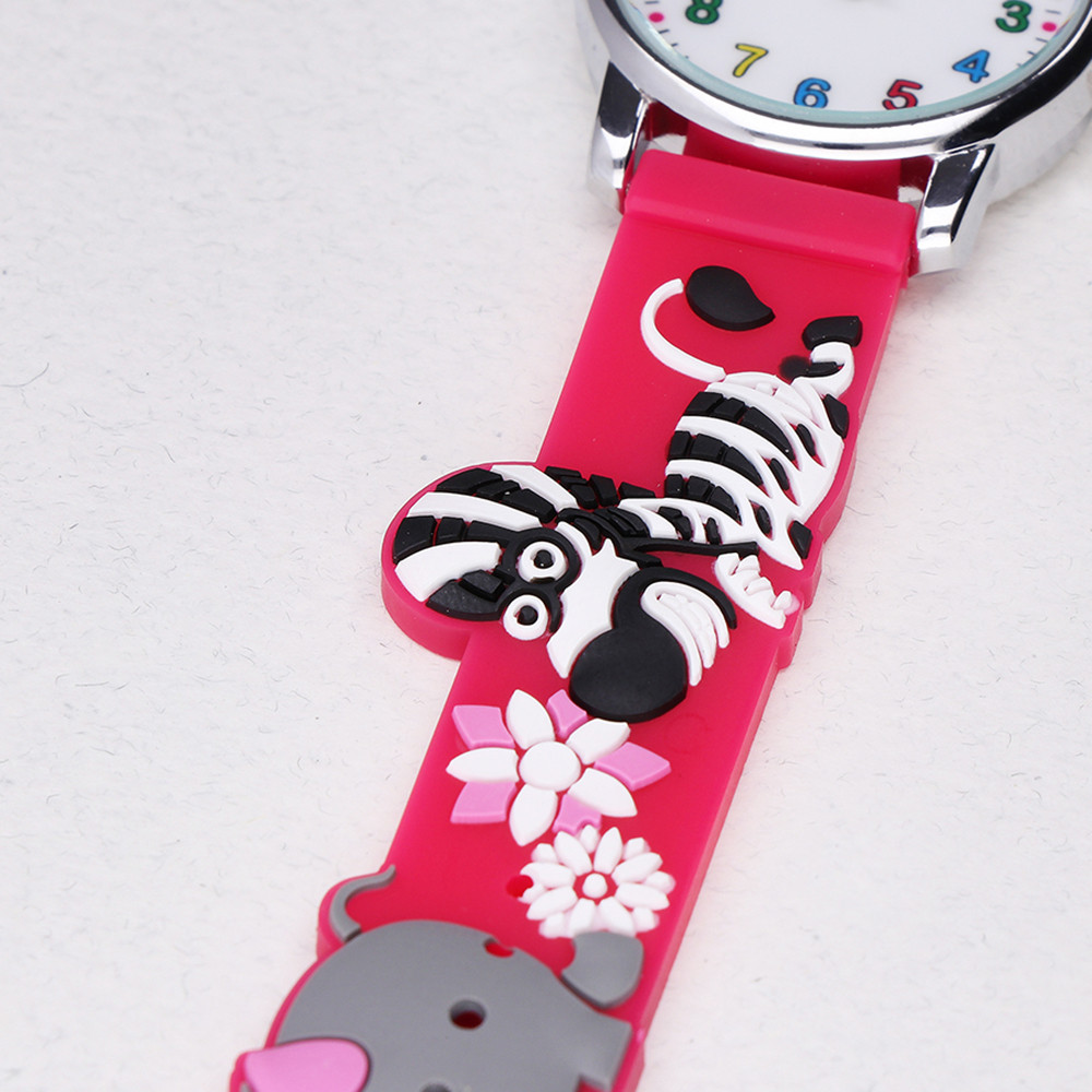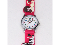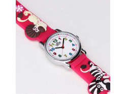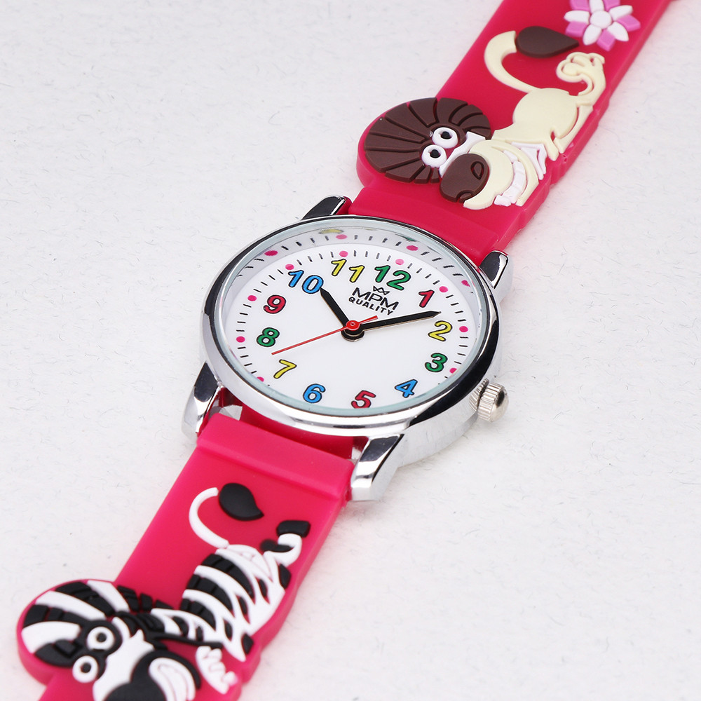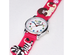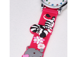 Populárne detské hodinky s arabskými číslicami a farebným gumovým remienkom s obrázkami zvieratiek.