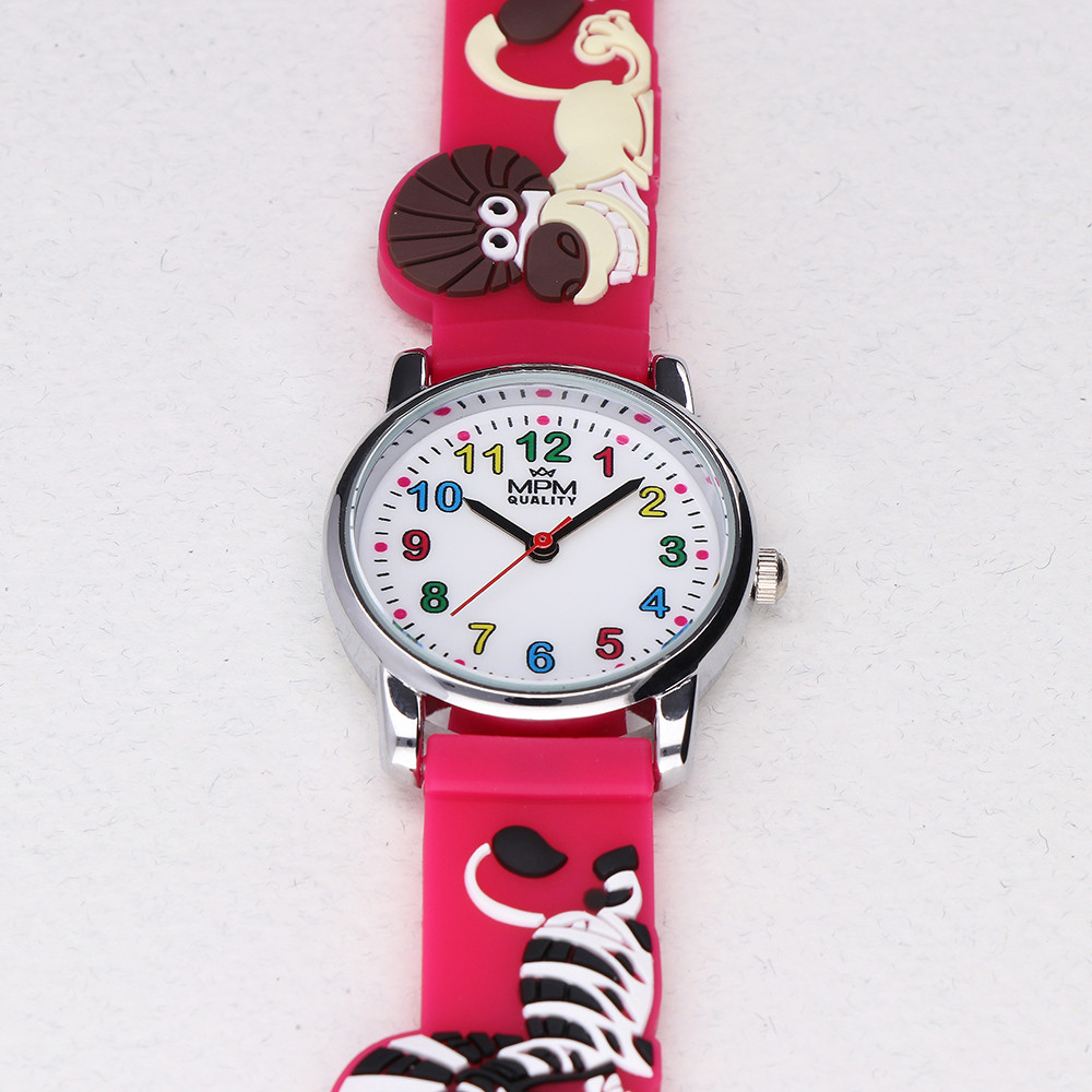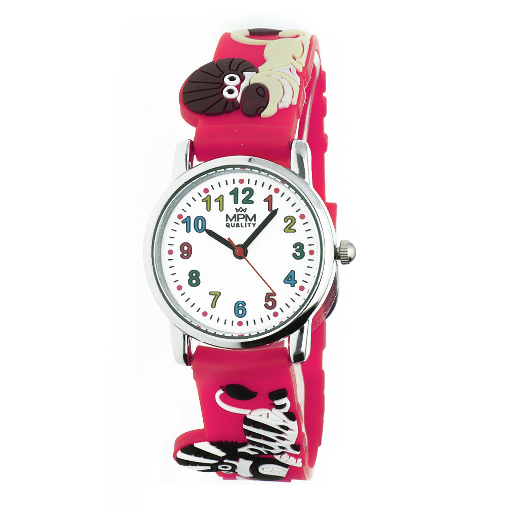 Detské dievčenské hodinky MPM Kids Animals - E - kovové púzdro - biely ciferník