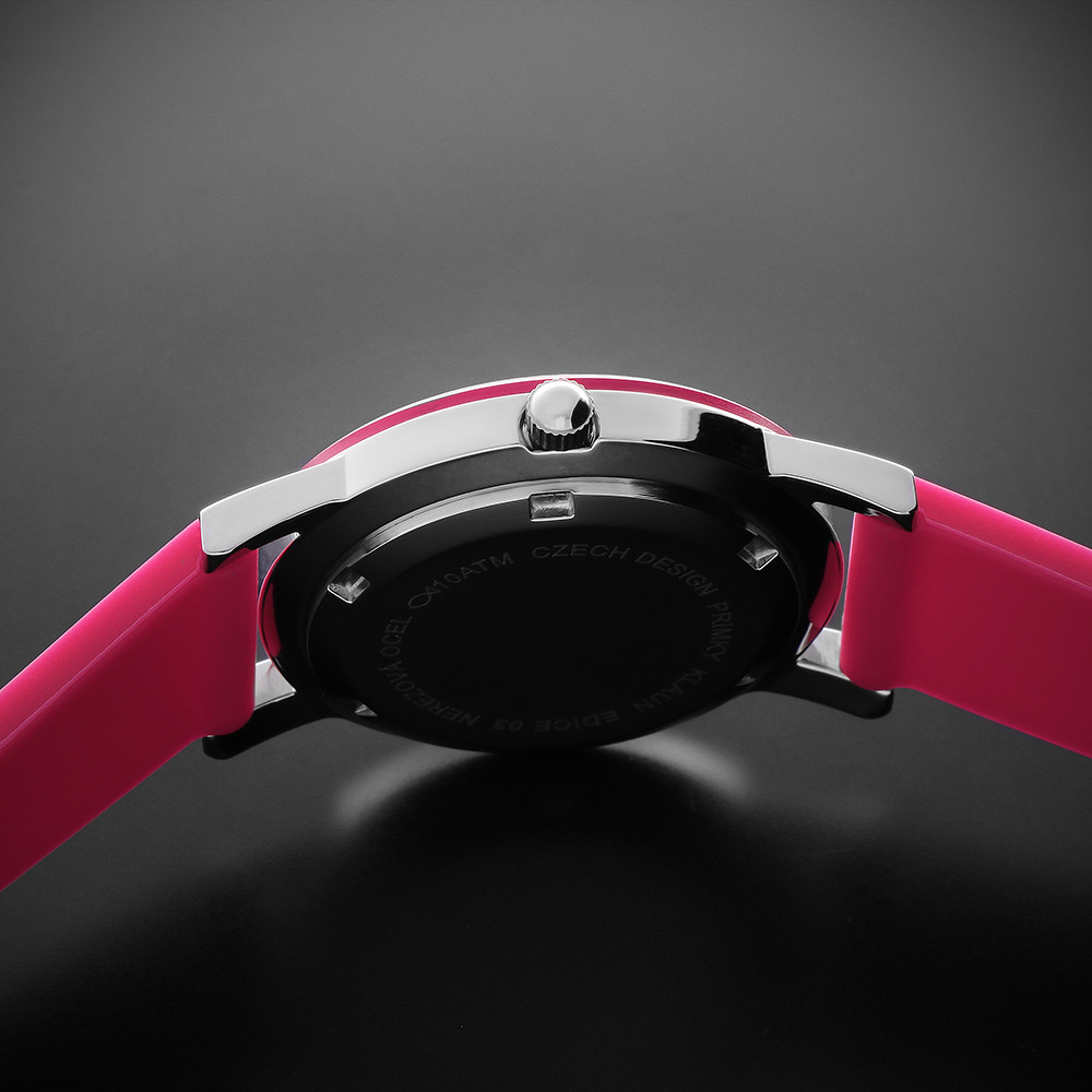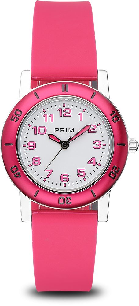 Tím grafických dizajnérov sa inšpiroval prehľadným a ľahko rozpoznateľným ciferníkom s arabskými číslicami v farbách prsteňa a doplnil model farebnými ručičkami. Vybrali sme tiež jasné farby, ktoré si zamiluje každý školák, a pomôžeme mu tak naučiť sa pozerať na čas na svojich prvých hodinkách PRIM. Minúty sú zobrazené aj na pevnej lunete, čo pomáha rozpoznať čas. Hodinky sú vyrobené výlučne z nehrdzavejúcej ocele 316L a sú vodotesné do 10 ATM. Celkový vzhľad dopĺňa nový farebný silikónový remienok.