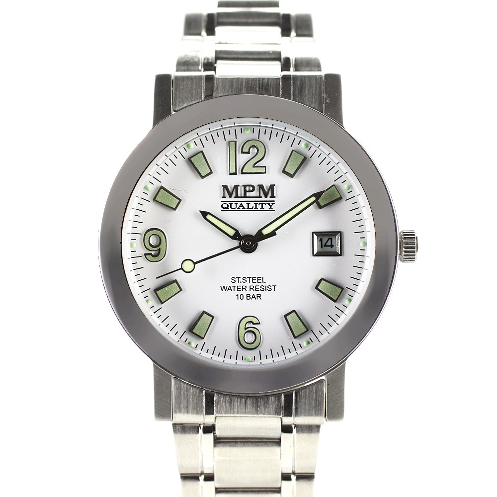 Klasické pánske hodinky MPM Quality W01M.10445.A - oceľové púzdro - biely ciferník
