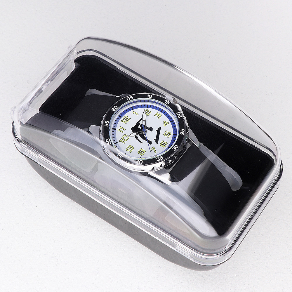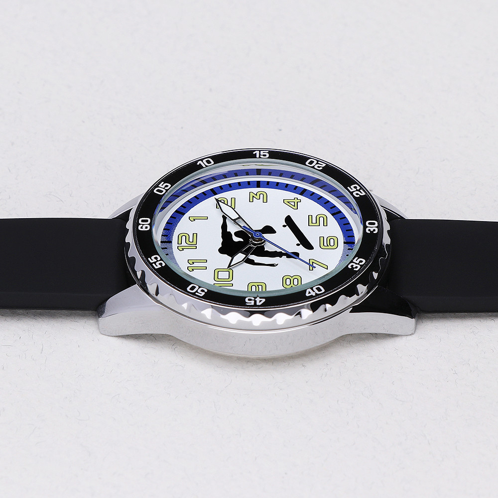 Detské hodinky MPM so športovými motívmi. Hodinky sú vybavené minútovou stupnicou a silikónovým remienkom. Púzdro hodiniek s viečkom je v kvalitnom prevedení z nerezovej ocele.