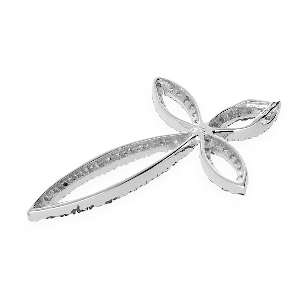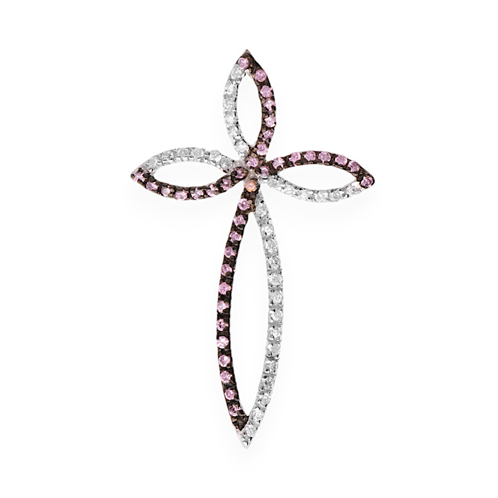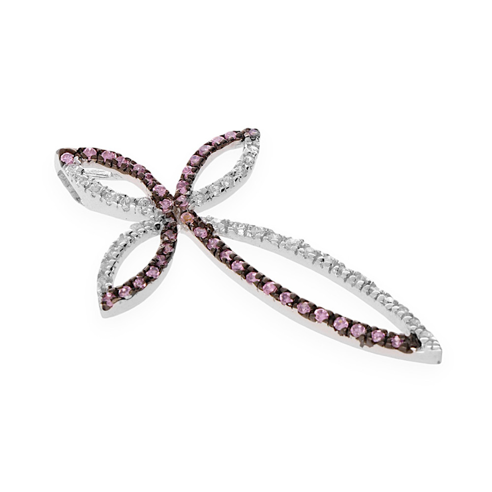 Trendy dámský přívěsek z rhodiovaného sterlingového stříbra (925/1000 Ag) vyzdobený kombinací růžových a bílých kamínků. Rhodiování stříbra zabrání jeho oxidaci a černání a stříbro si tak po dlouhou dobu uchová svou přirozenou krásu.