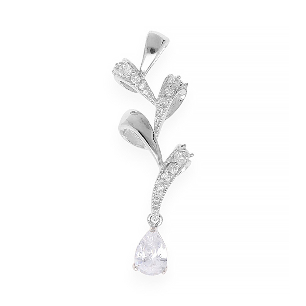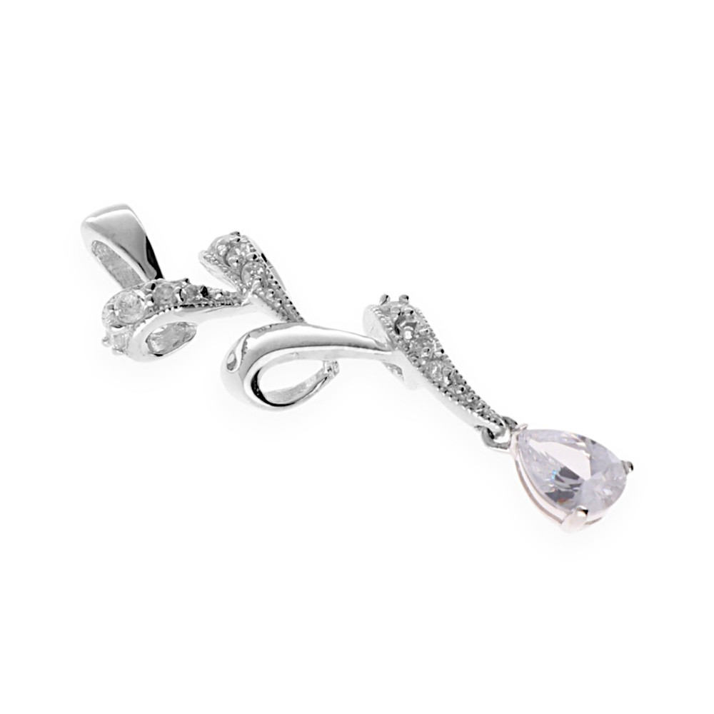 Velice zdařilý model dámského přívěsku vyrobeného z kvalitního rhodiovaného sterlingového stříbra a ozdobeného precizně broušenými kubickými zirkoniemi. Rhodiováním je přívěsek delší dobu odolný proti oxidaci a černání. Díky elegantnímu zpracování se tento přívěsek dokonale hodí pro jakoukoliv společenskou příležitost.