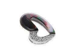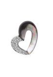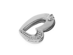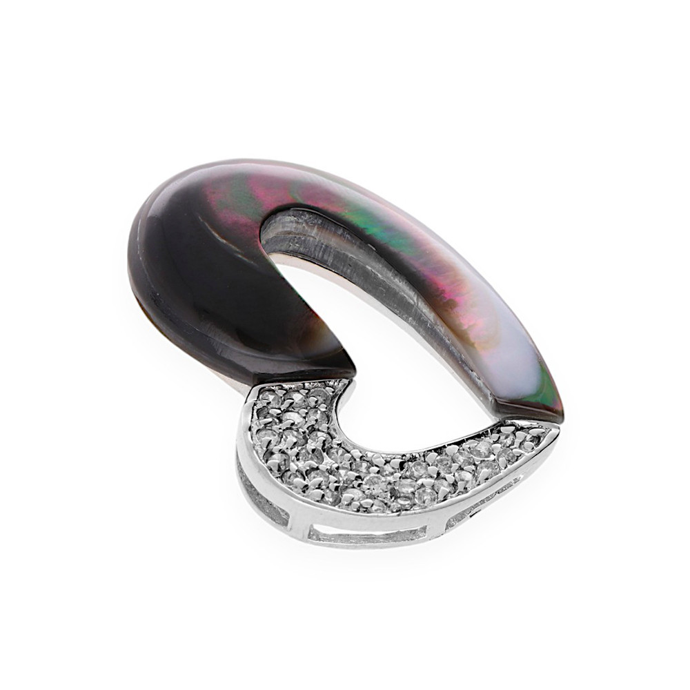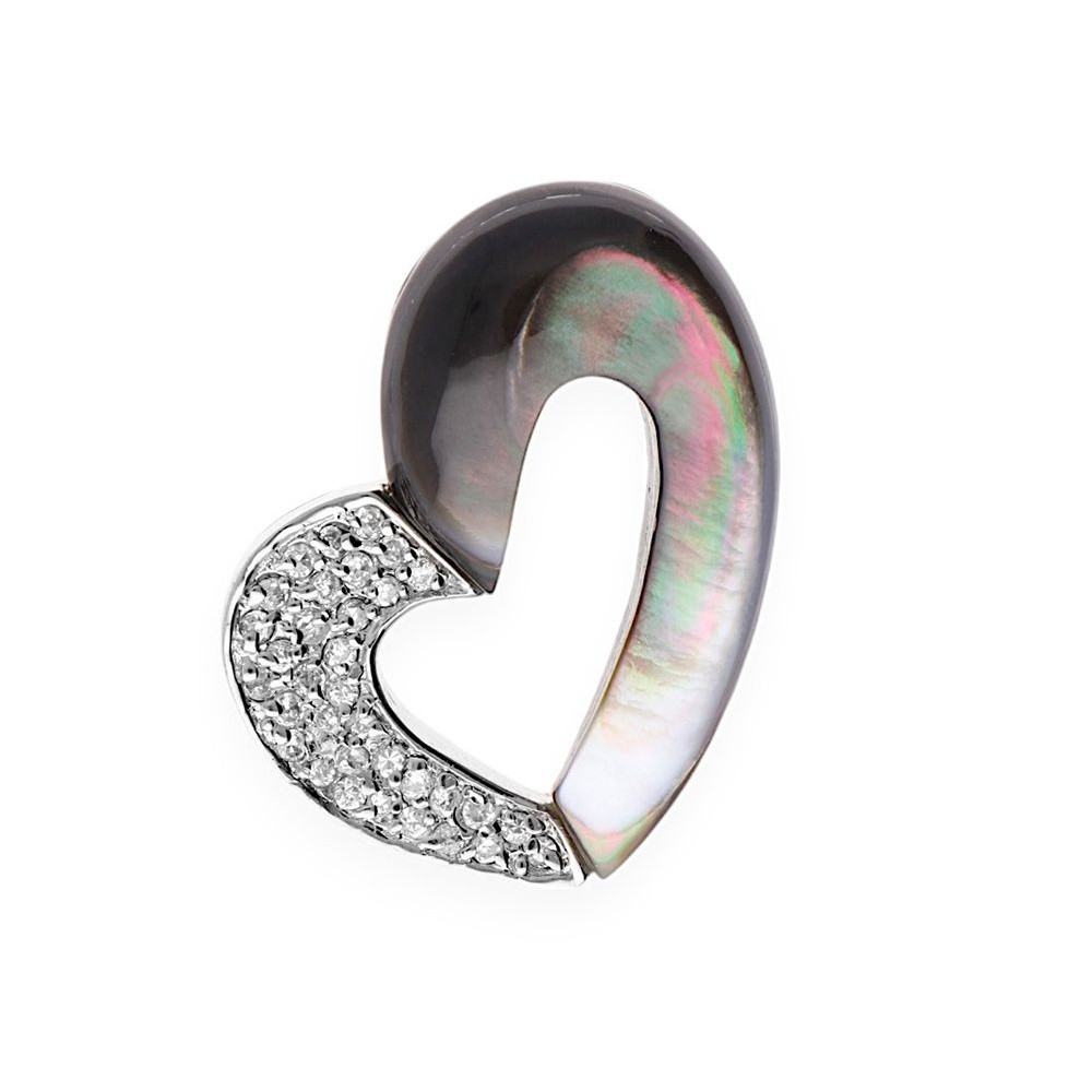 Dámský přívěsek z rhodiovaného sterlingového stříbra ve tvaru srdce. Zatímco levá strana přívěsku je ozdobená zářivými kubickými zirkoniemi, ta pravá je potažená dokonalým spojením perleti a pryskyřice. Perleť, díky dopadajícímu světlu na její povrch, nabízí nespočet krásných duhových odlesků. Rhodiováním si stříbro uchovává svůj lesk, déle odolává oxidaci a nečerná.