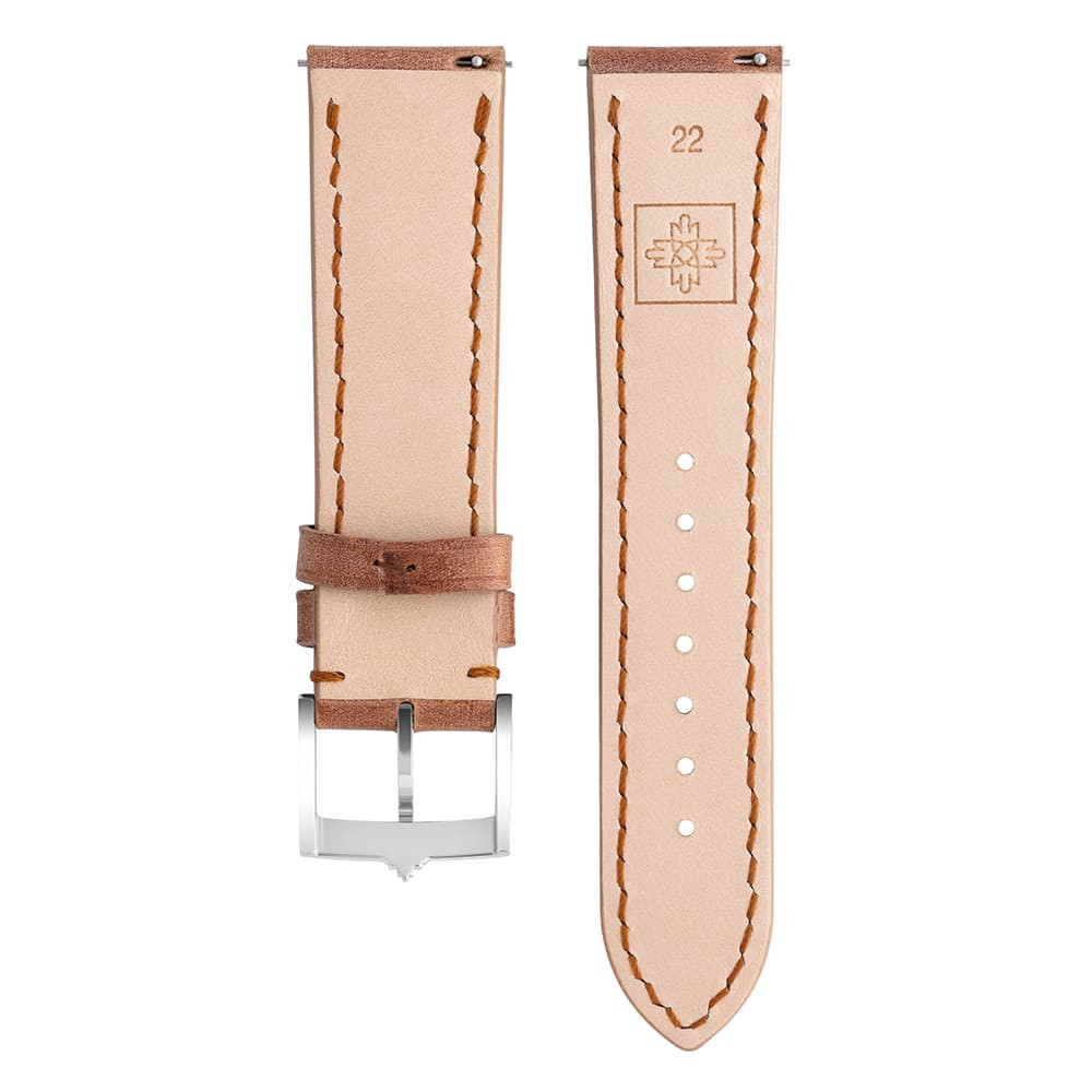 Poctivý pánský kožený řemínek, který na ruce působí pevně a sebevědomě. V nejširším místě dosahuje tloušťky 0,5 mm, díky čemuž si zachovává pevnost a zároveň nabízí komfort při každodenním nošení.