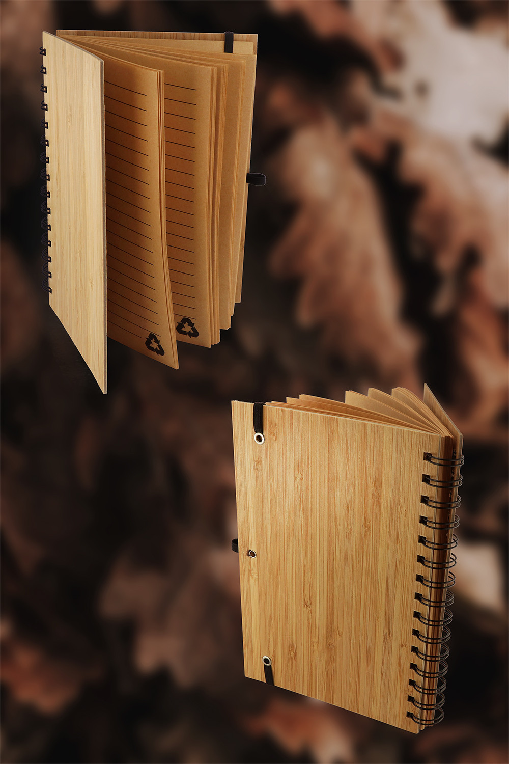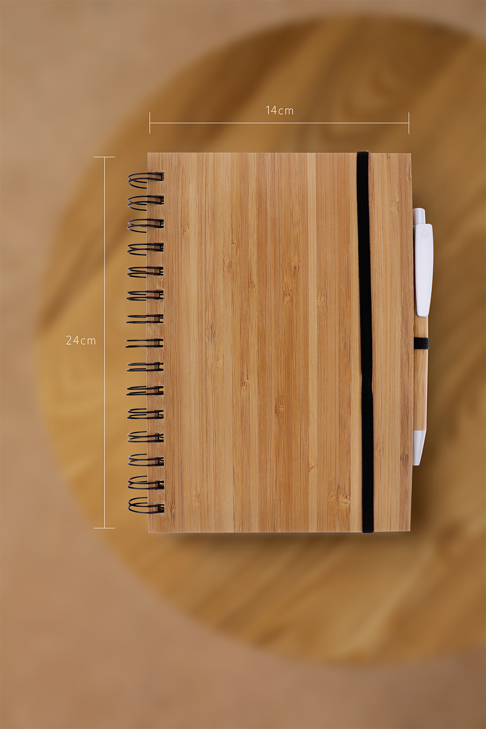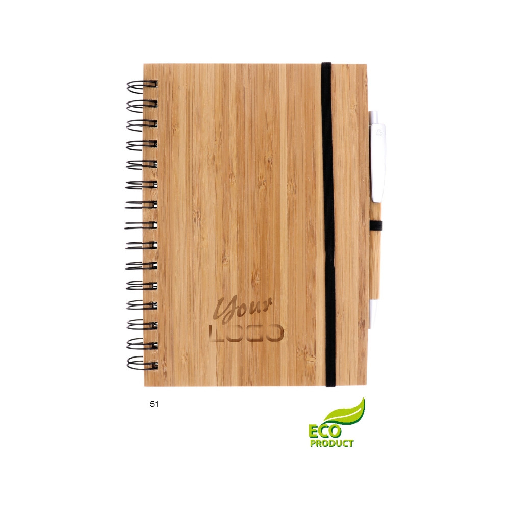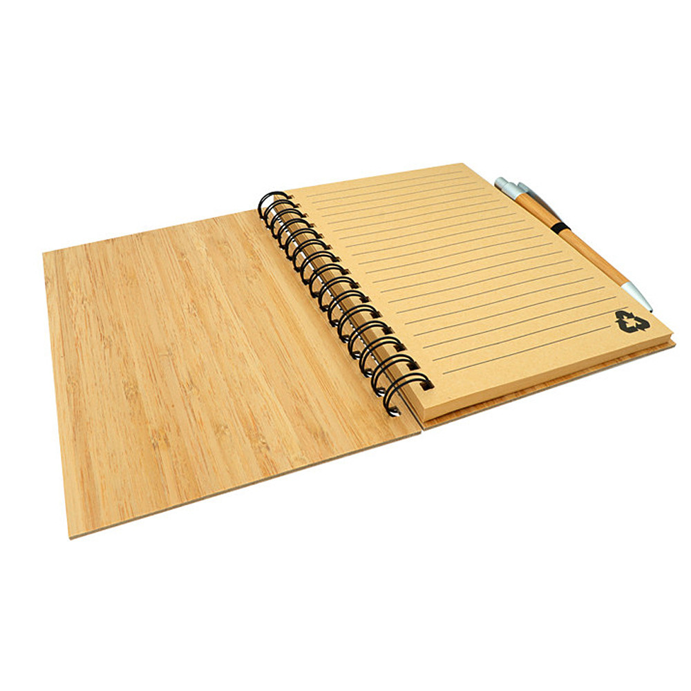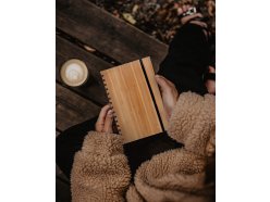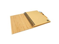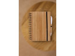 Blok A5 z přírodního bambusu se spirálou v deskách s bambusovým kuličkovým perem, papír 70 g, 70 listů, eco friendly.